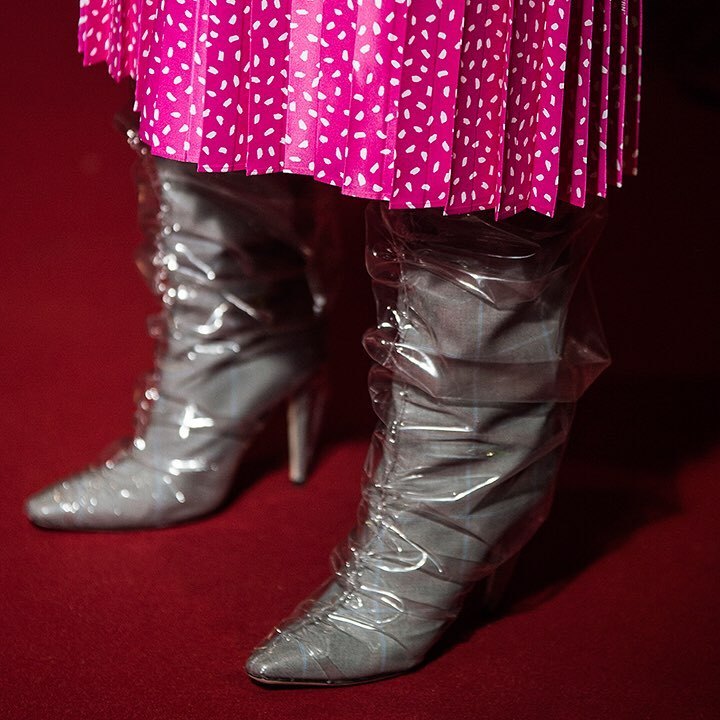 全球带货女王的最新时尚,是在高跟鞋外套塑料袋? |
