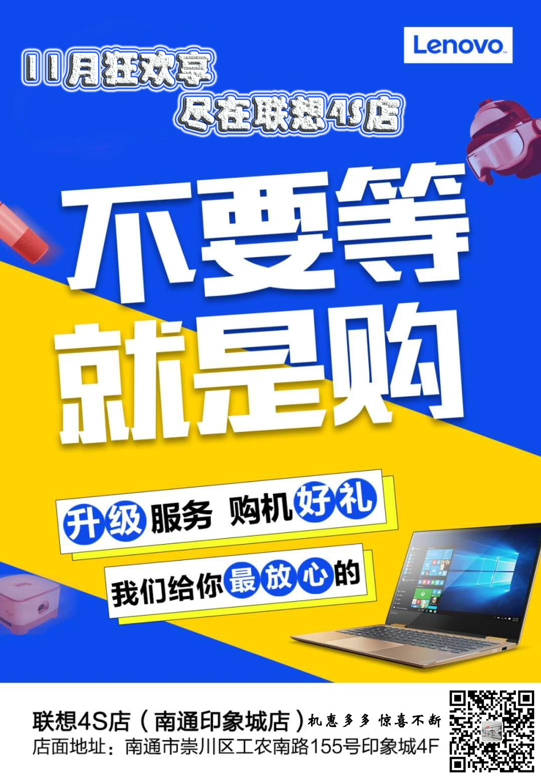 联想电脑官方授权4S店入驻南通印象城购物中心4楼啦。。。。