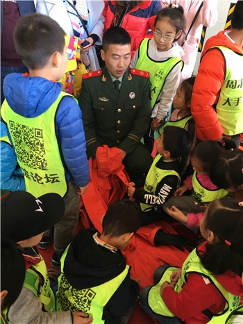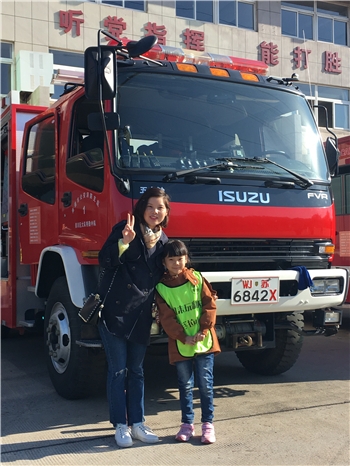 恰逢小寒潮,西北风拂面而过 但丝毫阻挡不了宝贝们的好奇心 早早到达集合地点,穿上我们特制的小背心 精神抖擞~ 活动还没开始,抓紧时间拍拍拍 摆个帅帅的造型“妈妈,帮我拍的酷一点~” 人员集结完毕,小朋友们迫不及待的聚到一起,开始今天的活动~ 第一站:参观消防车辆 各式各样的消防车辆,别有洞天 各式消防器材展示,消防员叔叔耐心介绍,小朋友们听得入神