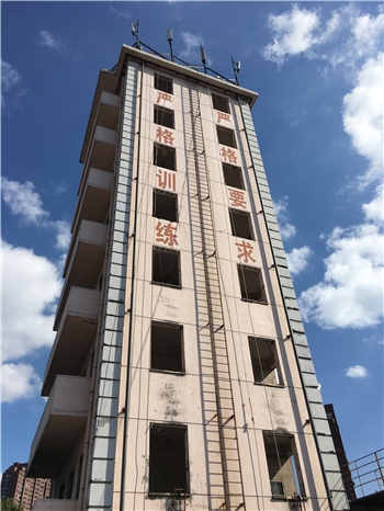 第三站:消防员挂钩梯展示 14秒速度攀上四楼
