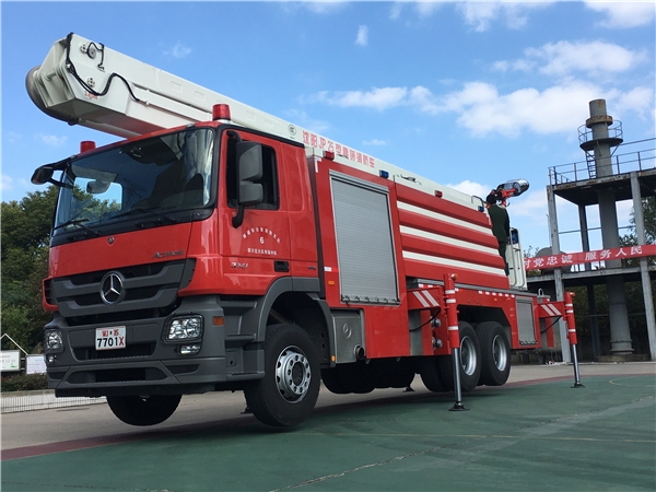 重量级云梯车登场 每一个小男孩都梦想拥有一辆属于自己的云梯车 30米云梯车伸展,适用于高空救援 “小小消防员”登顶云梯车,体验一把消防员的日常工作