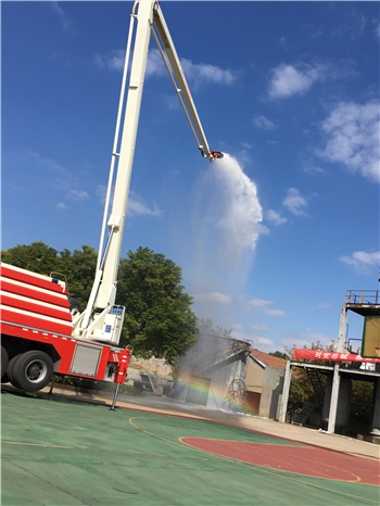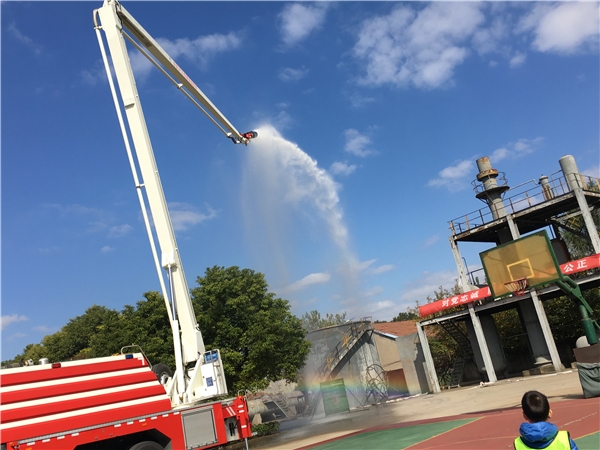 第四站:消防灭火器使用 第五站:车操训练 消防员们现场车操训练, 身背重斤消防器材 以血肉之躯守护人民财物不被大火摧毁 为我们最美逆行者点赞! 第六站:高喷车、云梯车实地演示 一望无际的蓝天,配上消防的那抹红~ 这大概是最让人心安的色彩 高喷车实地演习,我们有看到彩虹哦~ 再来个近景