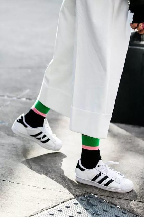 如果是这种几种颜色拼凑的look,想要给人很明朗的感觉就用小白鞋来拯救