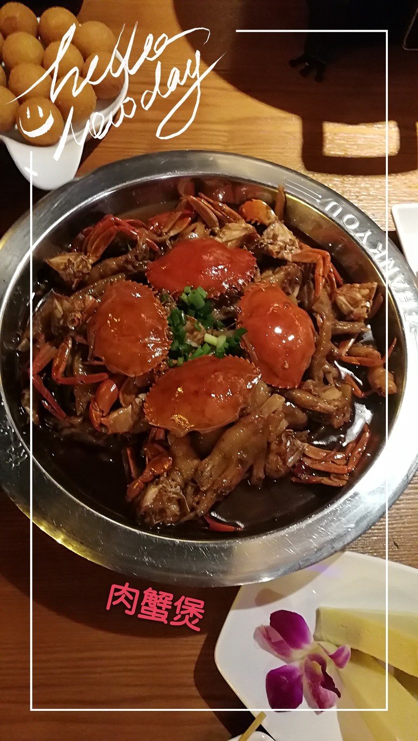 肉蟹煲我就抢到一块,我感觉里面的鸡爪更好吃。! [6 |5 V% a$ A; _* s; S1 E