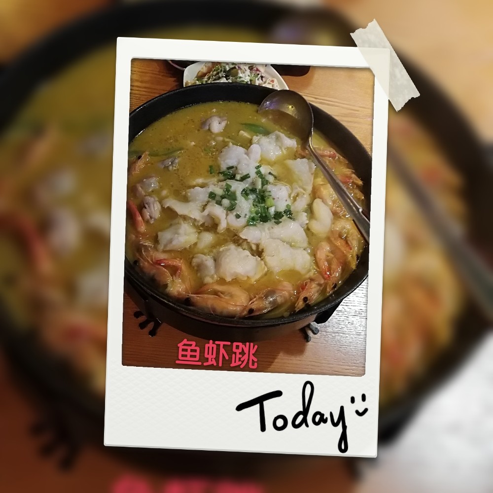 鱼虾跳我强烈推荐,里面有鱼、有虾、有牛蛙、有莴苣,口味适中,正好最近重口味吃多了,吃一下清单点的很好。