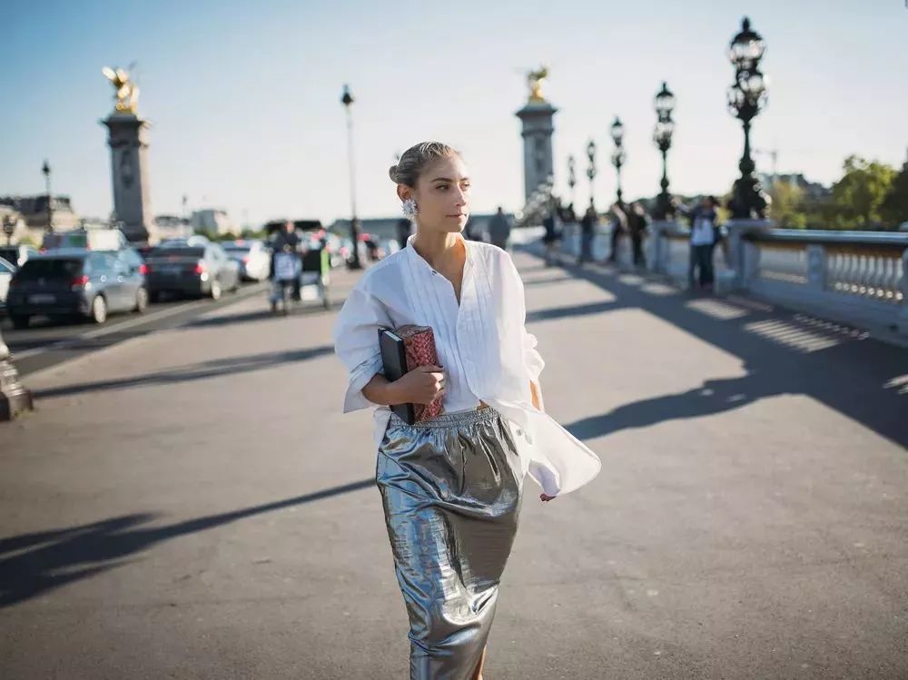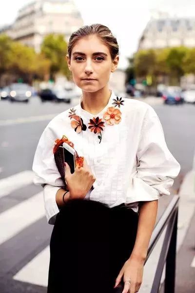 有了这些点缀,头发也无需刻意做造型,梳得整齐后面扎起来或者随意披散在肩头,都是轻松自在的 effortless chic。