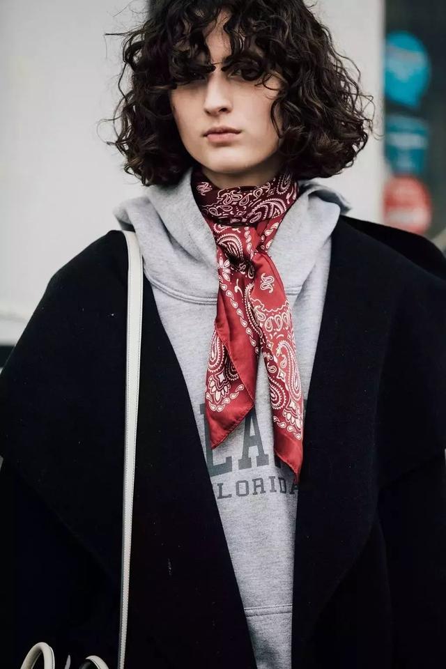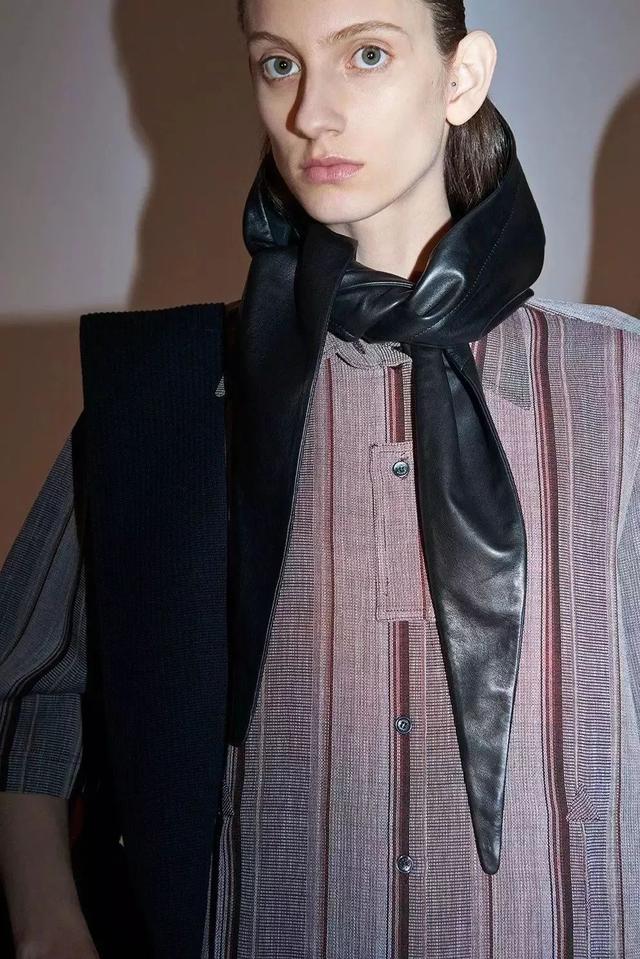 本季最引人瞩目的时装配饰要数这条黑色的小牛皮连帽围巾,搭配于外套外,可以轻松打造出层次感。