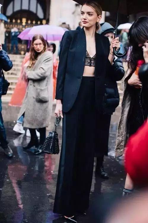 Lily Donaldson这套基本款黑色西服,因为露出的肌肤而变得更加性感迷人。
