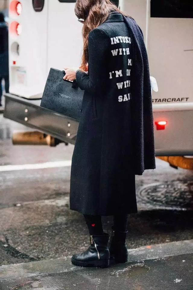 还有最近流行的标语的设计,也让你的整体风格更加与众不同,更凸显自我,有态度的人就算是一身黑色,也要是丰富得有看头的黑色。