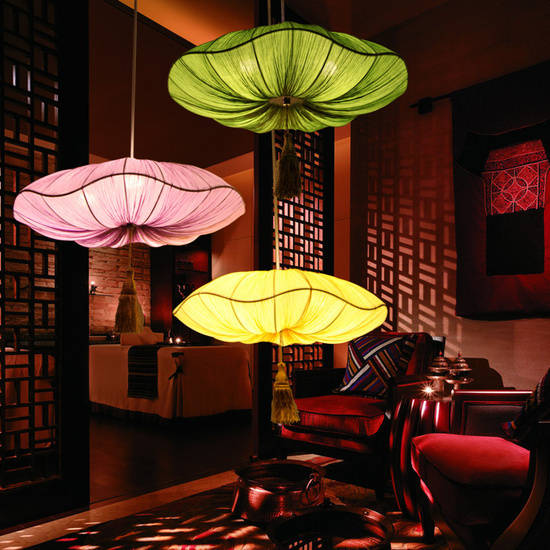 而现在,灯笼已经甚少用来照明, 更多的时候它是艺术品,有它点缀的地方美感倍增。 新中式的木质或丝绸或纸质结合的灯笼, 营造出迷离的光晕。 低调的材质与内敛的手法, 让人舒服,让人沉醉。