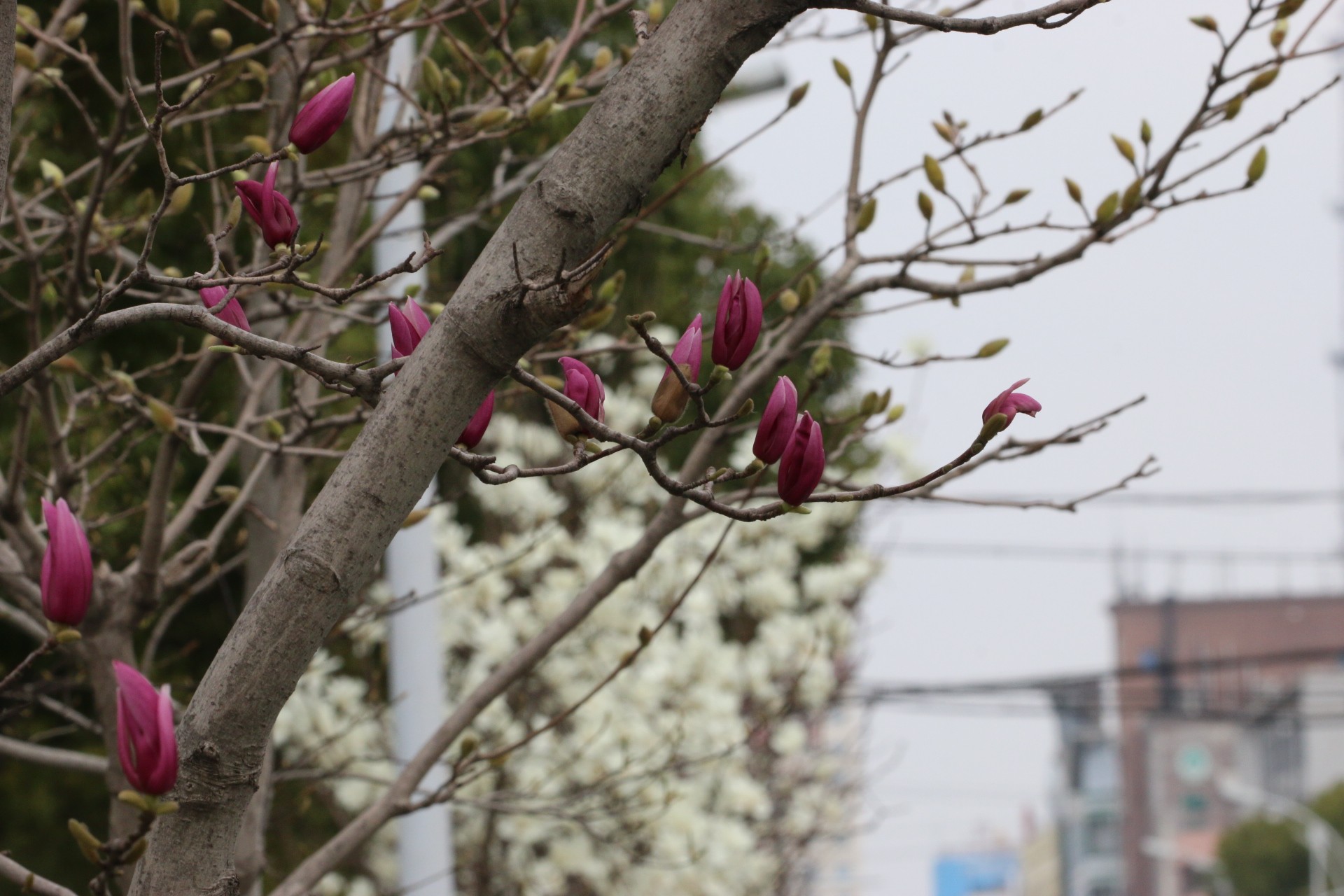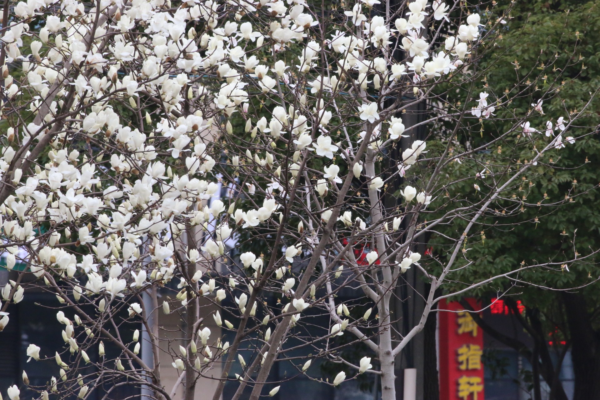 青年中路玉兰花几乎在一夜间抢先盛开,离家不远,散步就去看看,拍上几张,自得其乐。(3月16日11:00摄.)