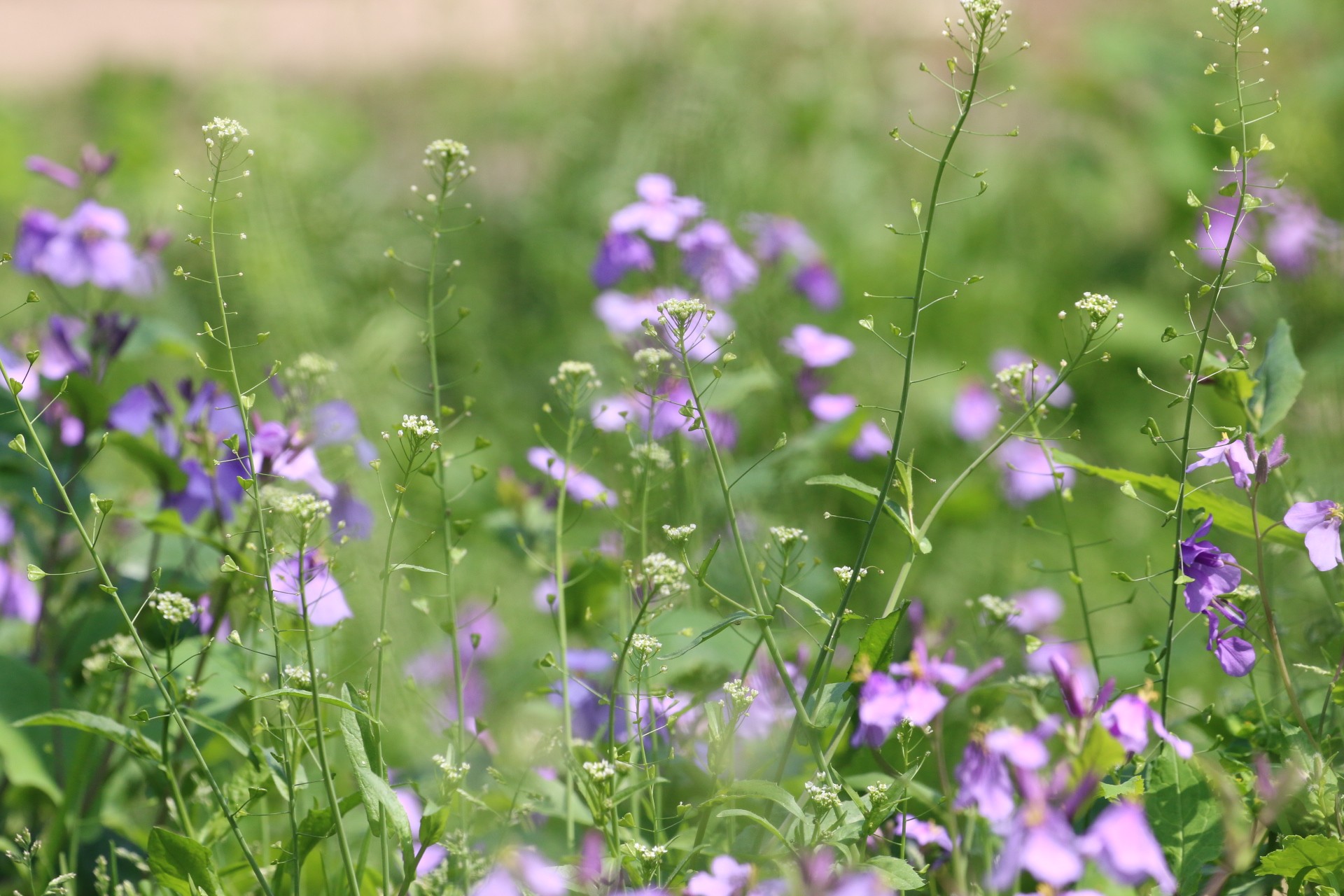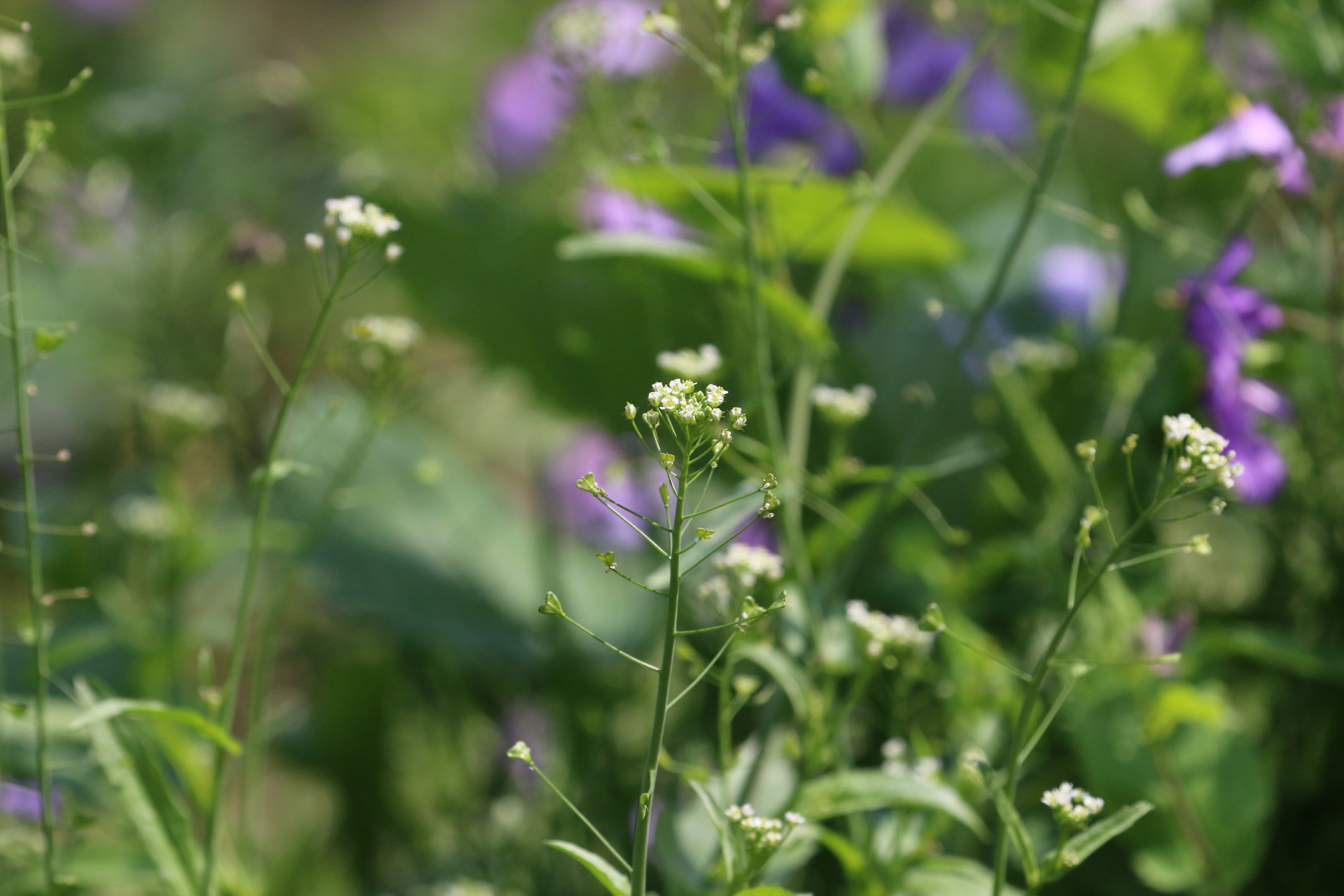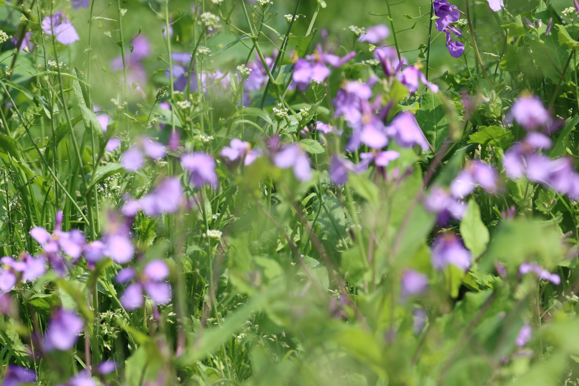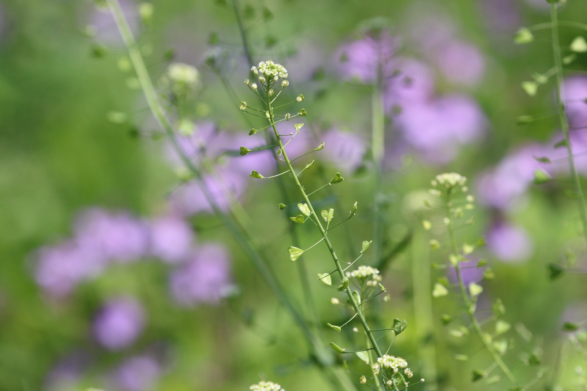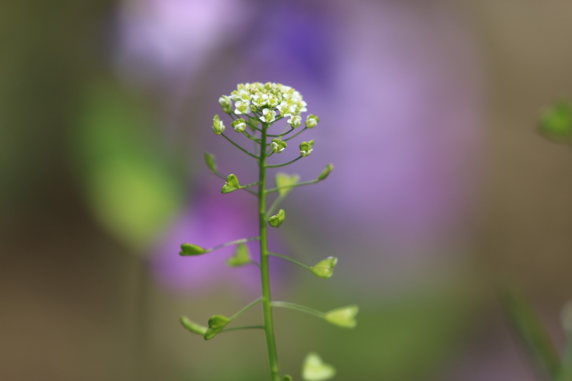 平凡的荠菜花为什么这么美丽,因为有了二月兰花的背景…… |