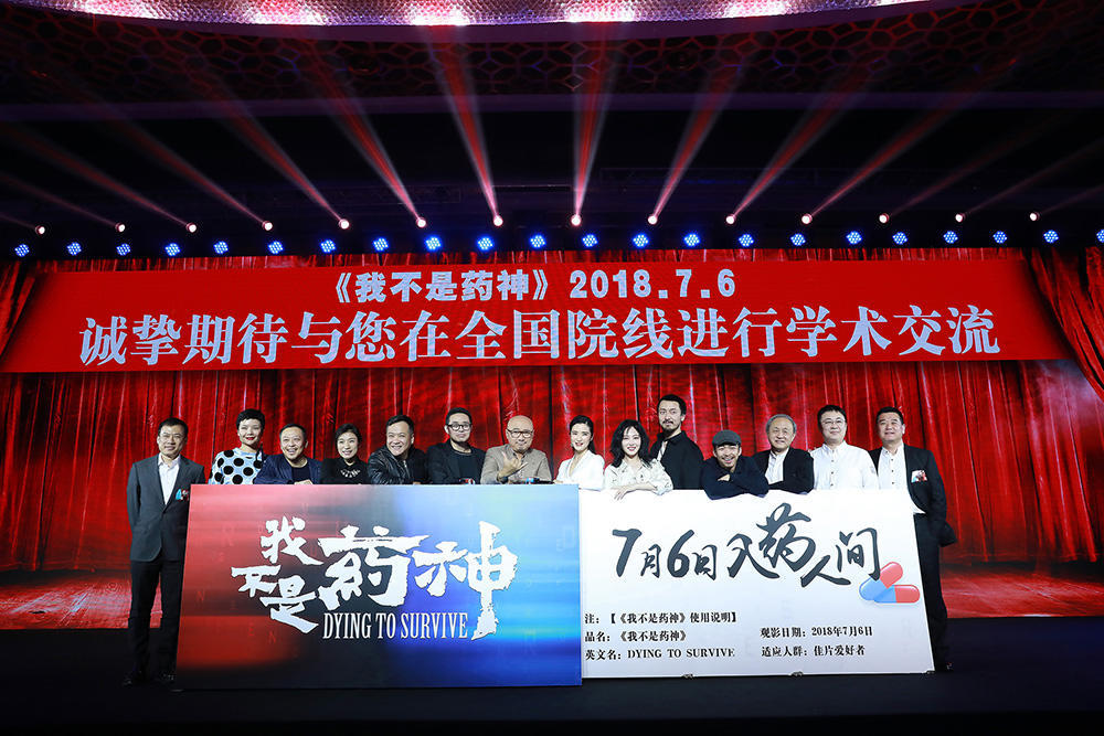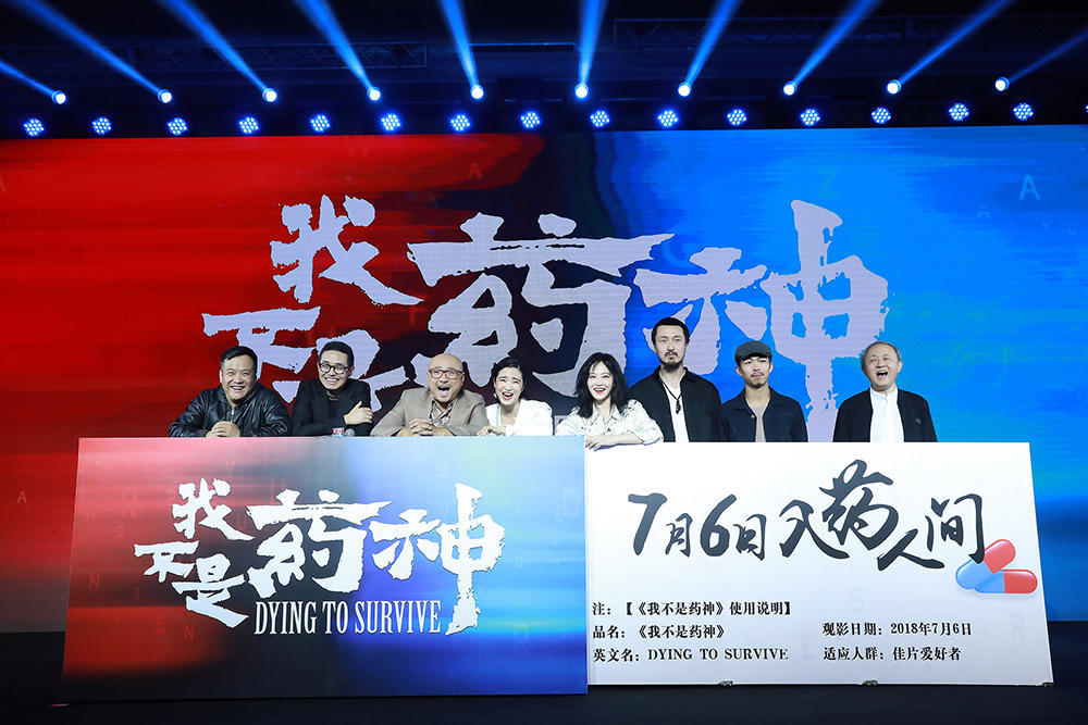 4月12日,电影《中国药神》在北京举行发布会并最终正式更名为《我不是药神》。经过漫长后制阶段,该片将于2018年7月6日全国上映,和观众见面。发布会上,导演文牧野,监制宁浩,监制兼主演徐峥,主演王传君、谭卓、章宇、杨新鸣,特别出演龚蓓苾悉数亮相。活动现场公布了先导预告和一组“开颜迎客”版海报,揭开影片神秘面纱,让人提前一睹影片气质。影片中以徐峥为首的“治愈小队”集结亮相,反差颠覆造型颇为抢眼。作为“坏猴子72变电影计划”的又一力作,《我不是药神》将是树立全新类型片标准的品质之作。宁浩徐峥联手文牧野的新组合表示,此次将会以招牌式的黑色幽默元素融合升级,打造社会英雄题材类型,让《我不是药神》成为今年暑期不负期待的作品。