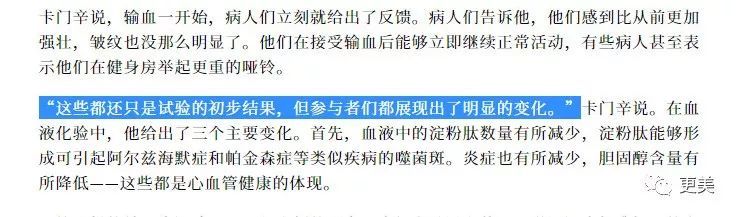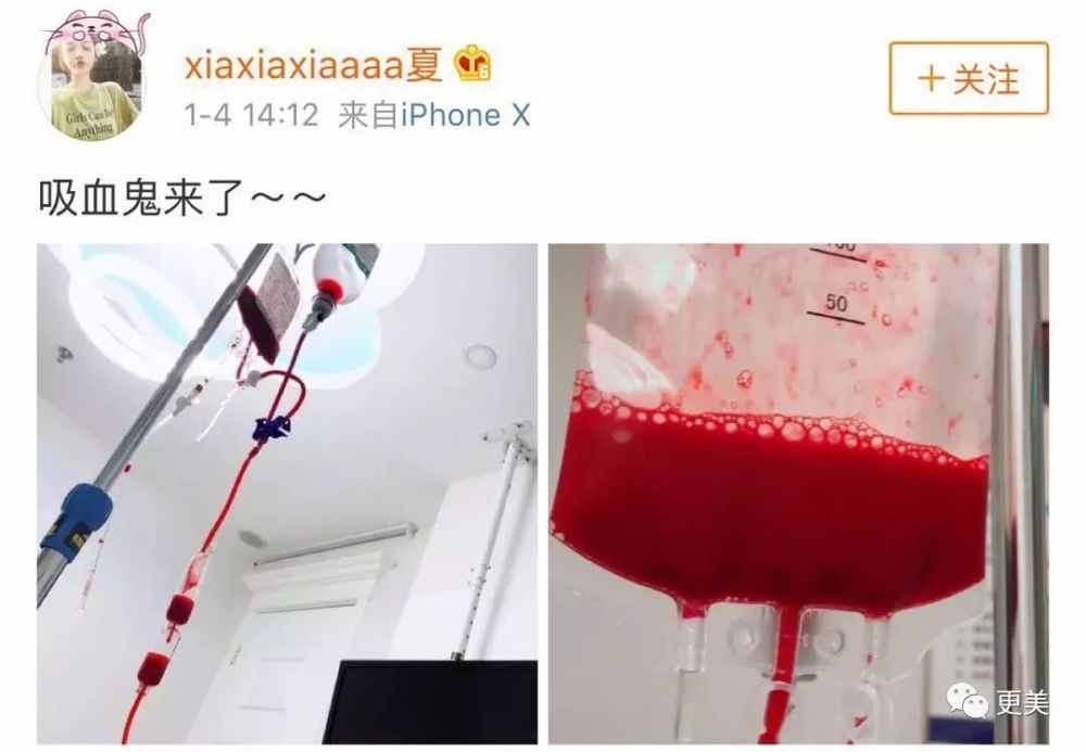 翻看了她的微博,发现这一条说被骗的状态已经删除了,只能找到她吐槽被骗之前,项目进行中,调侃自己是“吸血鬼”的图片。 仔细看图片发现这就是这几年很火的一个项目——“血液净化”。它还有一个通俗的叫法是“血液透析”,就是许多肾脏功能出现问题的患者需要做的治疗项目。 通过透析达到清除体内代谢废物、维持电解质和酸碱平衡、清除体内过多的水分等效果。 尤其是一些作息不规律、长期饮酒之类的人群,通过血透可以代谢掉体内废物,减轻肾脏的负担,也就是所谓的排毒。 夏夏花了30W传说中成本只有1W多的项目,跟医院几百块钱就能做一次的血透有所不同,算是进阶版的血液清理。 先将血浆从血液中分离出来,再通过一种技术进行吸附处理,将血液中的脂肪、免疫复合物、重金属杂质等对健康有害的物质清除。 如同字面意思一样,排除血液中的脂肪可以解决血液粘稠、循环变差。 因为普通人在25岁以后就进入了逐渐衰老的阶段,器官衰退、血液也受到影响,血液中的脂肪、胆固醇增多,还会沉积、粘附在血管壁上,血管就会逐渐变细。 当血管堵塞程度超过一定程度,就有很大概率会突发某些疾病(通过检查就可以判断自己的血液状态)。 血液净化可以降低血液粘稠带来的许多问题,减少许多并发症的可能。 而它排除的免疫复合物、重金属杂质,对健康也是有很大益处的。例如清除免疫复合物可以治疗风湿、局部水肿、溃疡等疾病;排除重金属可以保护视力、减少色斑形成、缓解失眠等状况。 尤其是对于年长的人来说,效果更为明显。 那么问题来了,这样神奇的方法为什么大众却并不太了解呢?答案特别简单,通过健康的作息+规律健康的饮食+适当运动,靠身体机能本身就可以达到差不多的效果~ 但造血功能跟身体其他结构一样,也是会老化的,并且这种衰老是只能延缓而不可抗拒的。开始衰老的人,造血功能逐渐减弱,血容量和红细胞数量相对年轻人都会偏低。 一些科学家的研究为富豪们抗衰续命提供了新思路,他们已经不再停留在捣鼓一个人的血液上了,开始玩“异体换血”!光听名字就知道是个刺激的项目。 他们一开始都是在小白鼠身上实验,将同一家族同血型的小鼠和老年鼠的血管连接在一起,形成共同的血液循环,发现老年鼠的关节组织、记忆力、肝脏、肌肉都有一定程度重返年轻状态。 被注入年轻血液的老年鼠,平均寿命被提高了40%。 曾经在科幻片里的东西,真的让科学家变成了现实,真心超出了所长的认知… 这一研究从1956年开始进行,在白老鼠身上有着不错的效果,于是一些科学家和研究员在2016年,征集了70位平均年龄60岁的老人,进行换血实验。 在为期大半年换血实验过程中,老人们大多觉得身体状况有变好,尽管在停止试验后,血液新生速度全靠自身供给后又回到了原来的样子,但这一发现仍让许多人感到兴奋。 那些想要靠血液来赚钱的商人,就将目标瞄准了那些有比较雄厚财力的中年、老年富人们。 他们的slogan很简单明快:给老年人换上年轻人的血液,来达到逆生长的目的。 一家美国公司的创始人是一名医生,对抗衰老技术情有独钟。 他筹备了一次有偿换血实验,并且每次换血还要收取8000美金,别嫌贵,这是成本价。 这些年龄在35周岁以上的实验者,都觉得身体比以前更健康了。并且其中患有心脏病、阿兹海默氏症(老年痴呆)的患者的相关生物指标都有明显下降。 这似乎意味着,那些换得起血的人,似乎掌握了长生不老的方法。 美剧《硅谷》里就有这样的情节,有钱有势的科技大亨家里可能都会养一个bloodboy,也就是输血伙伴,主要挑选那种年轻力壮身体资质较好的年轻人,给中老年大佬们长期供应输血。 年轻的男女人们就是健康的输血标本。 电视剧里也提到了这个“换血”由来已早,之前叫“异种共生”。 看完换血的这一段就会让人不禁想问,大佬们不忙着赚钱还开始搞起抗衰来了?所长只想说,呵男人,呵有钱的男人! 大亨们年轻时的青春都换成了中年的钱财和实力,所以到了中年已经有足够时间享受生活时却发现身体跟不了,所以抗衰、延年益寿就成了他们成功后除了钱以外的最大目标,他们才不想“有钱赚却没命花”。 所以硅谷大佬们就真的把电视剧里演的变成了现实,所长只想说,贫穷限制了我们的想象力!有钱人都城会玩! “换血实验”会有很多科技大佬们参与进来,硅谷科技大佬Paybal联合创始人、科技投资大亨彼得·蒂尔(Peter Thiel)可能是科技大佬里最怕自己衰老的一个了吧。 都说他致力于研究怎么长生不老,自己也说想活到120岁,所以他每天都坚持服用生长激素,据说他还和很多科技大佬都换过血了。所以50岁看起来还壮如小伙子。 金喜善曾经也爆过自己的保养秘籍就是定期的输血,不过她是因为贫血。 所以年轻人的血液到底真的管用吗? 据有些报道写,上面换血实验里的病人在一开始接受换血时都出现了明显的变化,变的比以前更强壮,皱纹减轻,还能去健身房举铁,身体都是呈现年轻化。 曾经俄罗斯医生亚历山大·波格丹诺夫在上世纪20年代就给自己注入过11次年轻血液,他说这些血液不仅让他有活力,连视力和认知能力也有所提升,还长出了新头发… 然而他却还没有来得及告诉大家副作用是什么就不在了,它的副作用可能对于需要血液的人来说,要定期输血才能维持效果,而对于贡献血的人来说,就会老的
