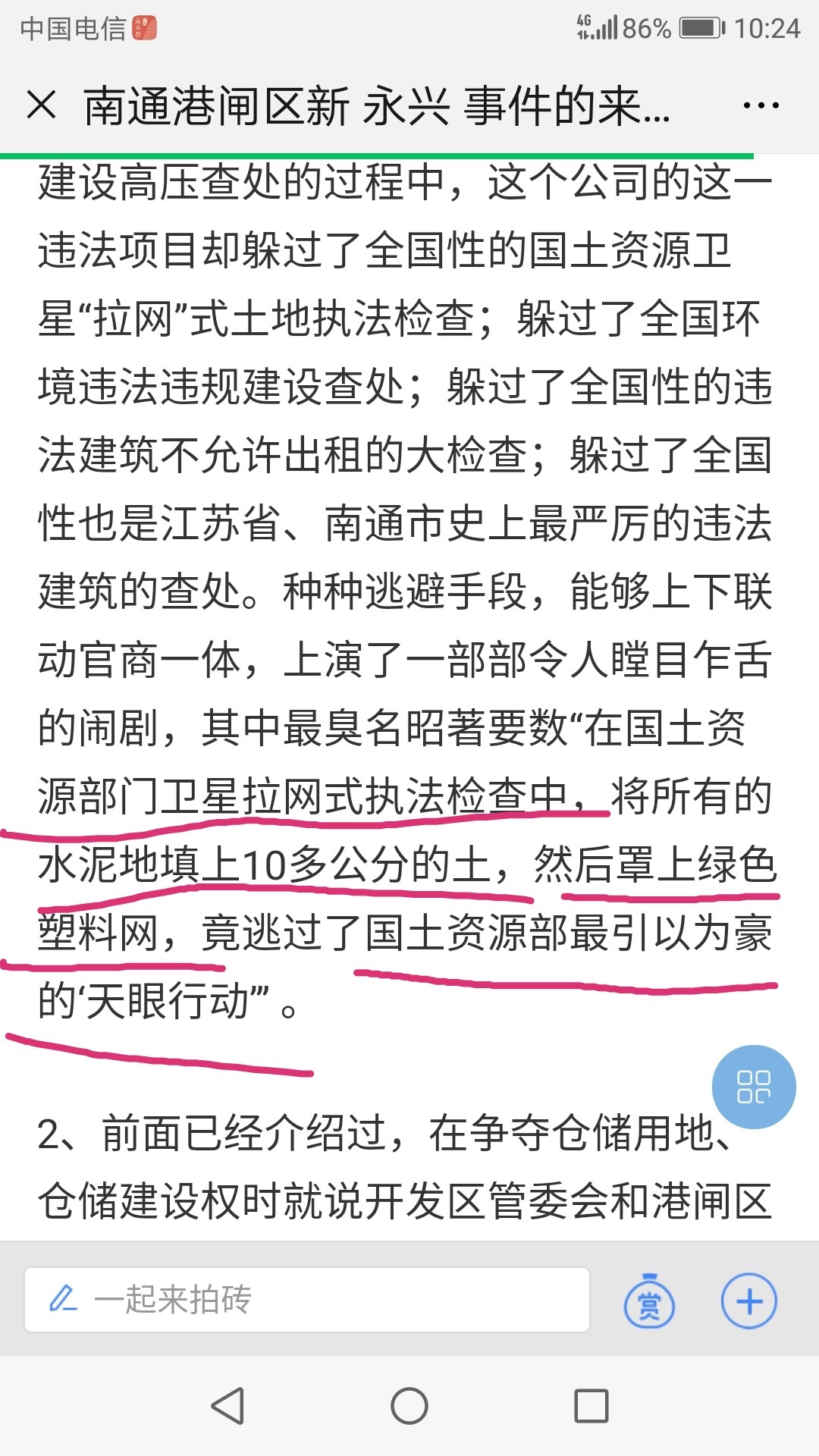 南通:非法用地被刷绿伪装成耕地 file:///C:/DOCUME~1/ADMINI~1/LOCALS~1/Temp/msohtmlclip1/01/clip_image001.jpg 通过盖土播种、刷漆、覆网,原本的建筑工地被伪装成了耕地。 港闸开发区将违建刷绿、覆网、盖土播种或为避开国土部卫星遥测检查 早报记者在工地发现,有工人在大面积铲除菜苗,铲除过后的地方,露出来的却是水泥地。早报记者走访村民得知,8月,港闸开发区获悉国土部即将对全国土地使用情况进行卫星遥测检查,遂进行了伪装。 早报记者 鲁勋江长清 日前,有江苏南通市港闸经济开发区村民向早报记者反映,当地非法占用农民耕地300余亩用于建设建材市场(仓库),为逃避国土资源部卫星遥测检查,竟以伪装手段对非法建设场地进行盖土播种、刷漆、覆网等。尽管当地国土局曾多次下达停工通知书,但该市场施工却从未真正中断。 对此,当地拆迁执法部门相关负责人对此表示只能时不时去叫停施工,但却无法“拆除”违法建筑。 当地曾多次责令停工 据该开发区八一村15组村民李某介绍,2009年4月,该区与江苏杰旺物流联运中心有限公司(以下简称杰旺公司)签订协议,约定将八一村14组、15组(城北大道东侧、黄海路北侧)150余亩耕地出让给杰旺公司建设物流中心。2011年11月,杰旺公司法定代表人严志刚因刑事犯罪被判刑。 2012年8月,港闸区人民政府发布《关于收回杰旺物流联运中心非法占用土地上建筑物的通告》,由港闸经济开发区收回杰旺公司非法占用的耕地,退还给八一村集体。而李某等人反映,港闸开发区在收回耕地后,并未退还给八一村集体,而是用于建设建材市场(仓库)。 今年4月9日,村民王某曾向南通政府官方网站去信反映港闸区违规用地、违法拆迁的行为。今年5月,当地国土局在答复中明确承认:"城北大道东侧、黄海路北侧"用地项目为"永兴商城仓储",位于港闸开发区八一村14组、15组,目前总用地面积约100余亩,其中23亩已征为国有并挂牌出让,部分土地为拆迁宅基地,其余部分已立案查处。"永兴商城仓储"项目从2012年以来陆续开工建设,国土部门发现后多次到现场制止,并通报港闸区政府、港闸开发区管委会,要求其尽快完善用地手续。” 早报记者获悉,南通市国土局先后至少下达了3份《责令停止违法行为通知书》,但相关地块不仅没有获得相应的合法用地手续,还在“先行施工”。不仅如此,相关答复中提到,与此相邻的“城北大道西侧、黄海路北侧(八一村17组、18组)”目前正在开展房屋拆迁工作,尚未改变土地用途。但到今年下半年,相关地块已建成12处大型仓储库房。李某表示,截至目前,该项目非法占用的耕地达300余亩,建设规模超8万平方米。 被指为应付遥测检查 不久前,早报记者来到在建工地时发现,有工人在大面积铲除播种后的菜苗。更令人惊讶的是,铲除过后的地方,露出来的却是水泥地。早报记者走访村民得知,今年8月份,港闸开发区获悉国土资源部即将对全国土地使用情况进行卫星遥测检查的消息,遂对违法用地的行为进行了伪装。 据村民介绍,该开发区首先组织以军事伪装手段对所占耕地进行包装,几天之内就将已建成的违规建筑顶上全部刷成绿色,并将露天堆放的货物和建筑材料等覆盖上绿色伪装网;紧接着,在水泥浇筑的场地上先覆盖上厚厚一层土,再撒下菜籽,制造复耕假象。等遥测检查结束后,港闸开发区再让工人铲除水泥地上的泥土和菜苗,继续复工建设。 据村民李某介绍,在上级检查组到达之前,港闸开发区还将建材市场(仓库)的大门临时封闭,改建成围墙,以此逃过了处罚。从当地村民提供的图片里,可以看到该工地用来进行伪装覆盖的绿网、工地铲除泥土里刚吐出的新苗以及被临时堵上的工地大门。 “只能阻止、无法拆除” 据八一村15组拆迁户严某介绍,他家原本有233.6平方米的房子,按照港闸开发区的补偿标准,仅仅得到了20万元左右拆迁补偿,这笔钱要等到三年后新的安置房建成,拿房子的时候,折价算进去。“自己还要加钱,把房子的差价补齐才能够拿到房。”严某等人表示,按照安置房的价格,村民差不多要再出20多万元才能拿到面积相等的房子。 据了解,当地村民曾向江苏省国土资源厅反映永兴商城违法用地问题。该厅根据国务院《信访条例》规定,将反映的问题转至南通市国土局港闸分局处理。当村民拿着信访事项转送告知单前往港闸分局了解情况时,该局工作人员却表示其所持的告知单来源不可信,不予答复。 本月上旬,早报记者来到该项目工地时,发现有十多名工人正在工地上搭建厂房钢结构。据施工工人介绍,此处建设时间很长但进程缓慢,经常会被拆迁执法大队叫停施工。随后,就有该区国土部门拆迁执法大队相关执法人员来到现场责令工人停止施工。但等执法人员一走,工人们又开始继续施工。 据该大队一名刘姓副队长介绍,此处施工已经被制止了很多回了,并表示:“全国各处都有违建的行为,你干嘛要盯着我们这个地方呢?”对于违建行为,该负责人称:“我们管不了,只能阻止他们施工,拆除没有得到上级政府的许可。”