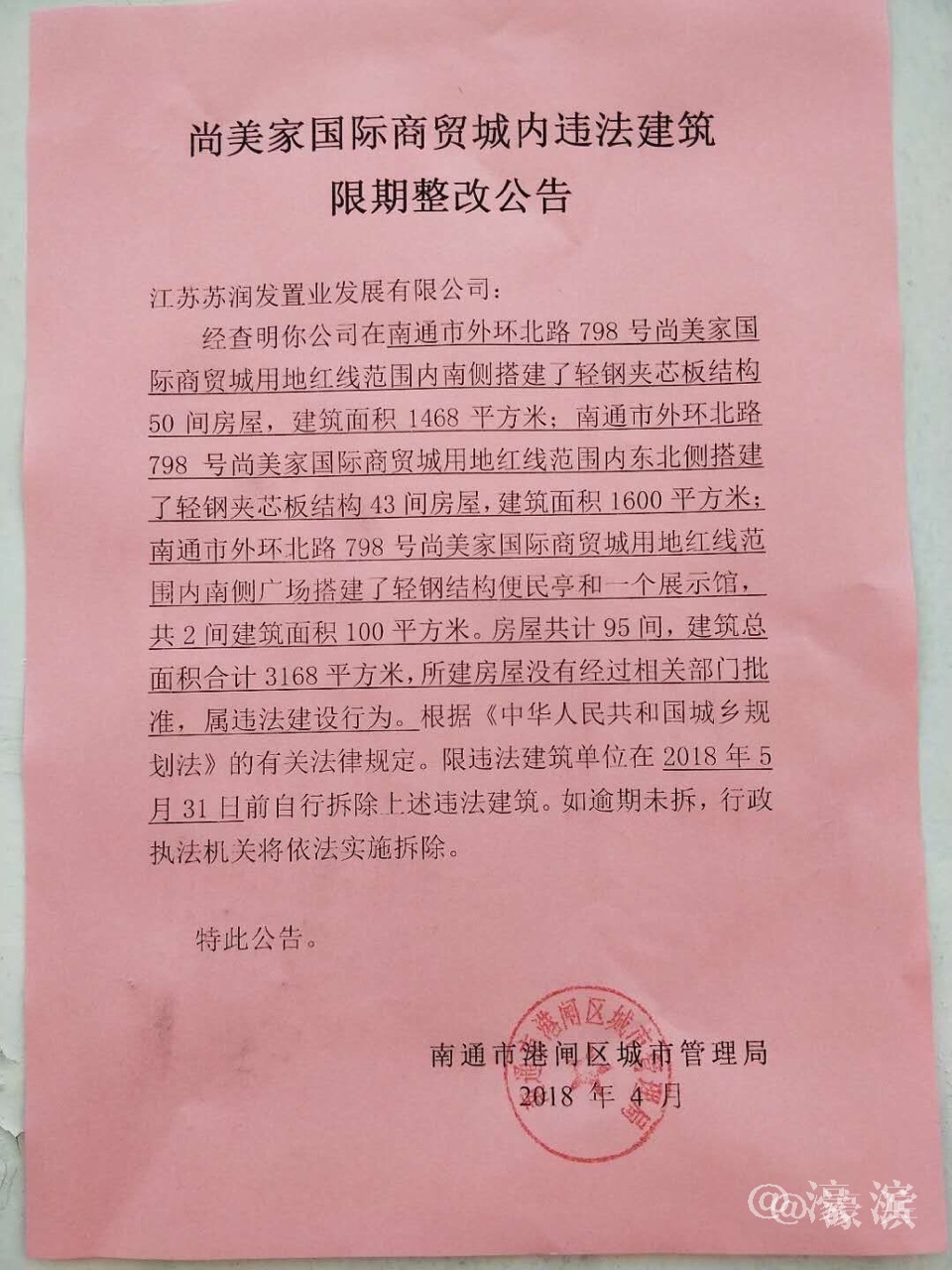 [百姓民声] 港闸城管,尚美家的违建何时拆除? |