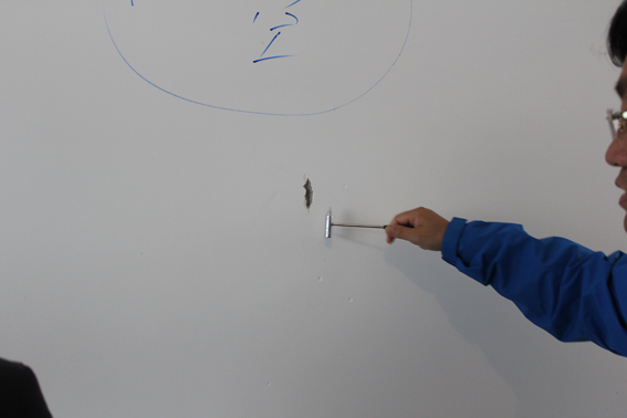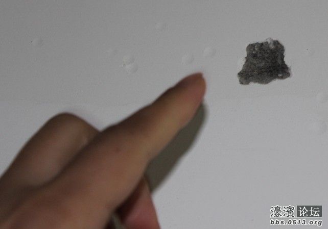 电视机墙面出现空鼓(出自濠滨验房) 空鼓处用手可扣动(出自濠滨验房) 检查墙壁是否平整,是否有渗水,是否有划痕裂纹,是否有爆点(生石灰在发成熟石灰时因搅拌不匀,抹在墙上干后会形成爆点)。