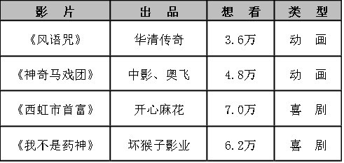 喜剧方面,几乎“出手就没失败过”的开心麻花,继《夏洛特烦恼》、《羞羞的铁拳》之后又推出《西虹市首富》,同样是《夏洛特烦恼》的黄金班底闫非、彭大魔执导,金牌喜剧演员沈腾搭档《我的少女时代》女主角宋芸桦,又将擦出怎样的火花?而近期口碑暴涨的《我不是药神》同样被业界寄予厚望,此前坏猴子出品的一系列电影包括《疯狂的石头》、《绣春刀》等,曾为其积累了良好的品牌,此次《我不是药神》再度搭载徐峥的票房号召力,相信亦将取得不错的成绩。 其实,动画类型和喜剧类型影片一直以来都是暑期档的“常客”,不同的是动画片更容易诞生口碑黑马,例如前两年的《大圣归来》、《大鱼海棠》、《大护法》等,均获得了业内外不俗的评价。但是在票房表现上,依旧很难有国外《疯狂动物城》的容量。相反,喜剧作为国内最通俗的“合家欢”类型,在票房表现上却常常是“以小博大”,例如2015年的票房冠军《捉妖记》和《煎饼侠》,两部影片就撬动36.37亿人民币的票房。