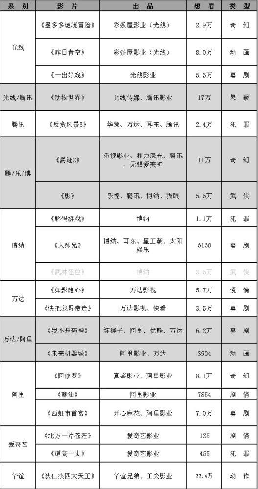 这样梳理下来,暑期档的格局也愈发明朗了。最大赢家极有可能就在光线、阿里和万达当中诞生。