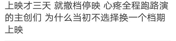 电影拍摄上映后票房不如预期设想评分低评价差,诸如此类的事情算是常见,甚至当初《三生三世十里桃花》为了拉高票房还做出过锁场这样的举动。然而,不过票房再糟糕,上映不到三天就撤档停映这样的事情小编表示还真是很罕见。