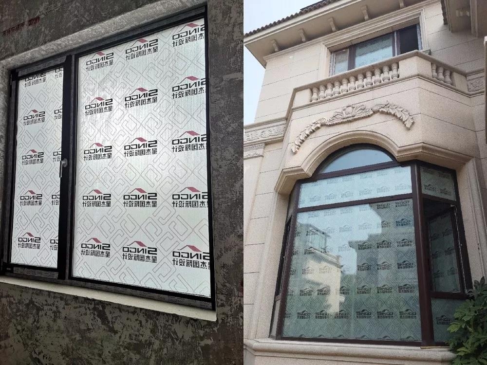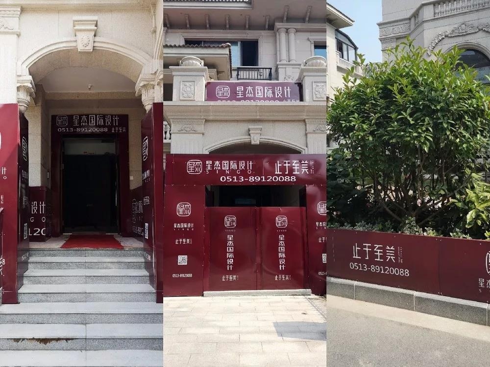 别墅门外护栏、立柱、墙面、花圃均做了防护膜保护, 避免施工期间,材料进进出出造成损伤。 " o7 `) ^. h- I6 G6 W