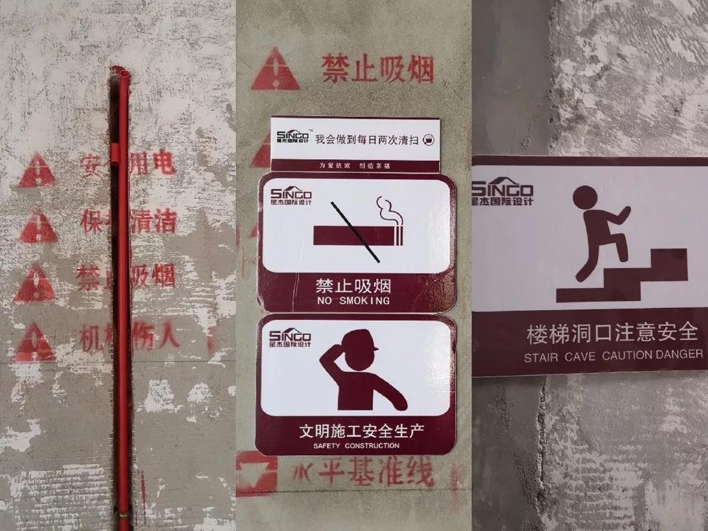 2 y+ ~, z8 ]8 b9 d9 w7 l在别墅施工现场上张贴安全标识,时刻加强、提醒业主与施工团队的安全意识。