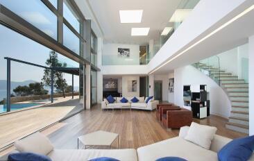 地中海风格马上可以联想到白色和蓝色。典型的拱门与半拱门、手工漆刷的粉白墙、家具尽量采用线条简单且修边浑圆的木质家具,瓷砖色彩和花纹尤其具有当地色彩。在起居室,窗帘布、桌布与沙发套的选用上,喜欢用棉织物,图案用格子、条纹或细花的,感觉纯朴又轻松。 ) K, R1 _8 W" S! `: |, N