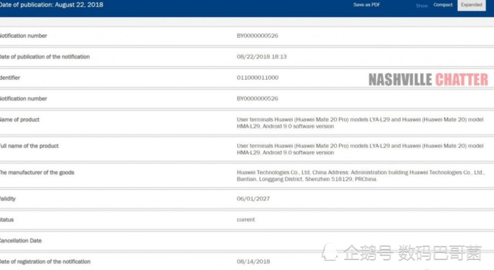 华为Mate20入网:Pro和普通版屏幕或不同 配安卓9.0