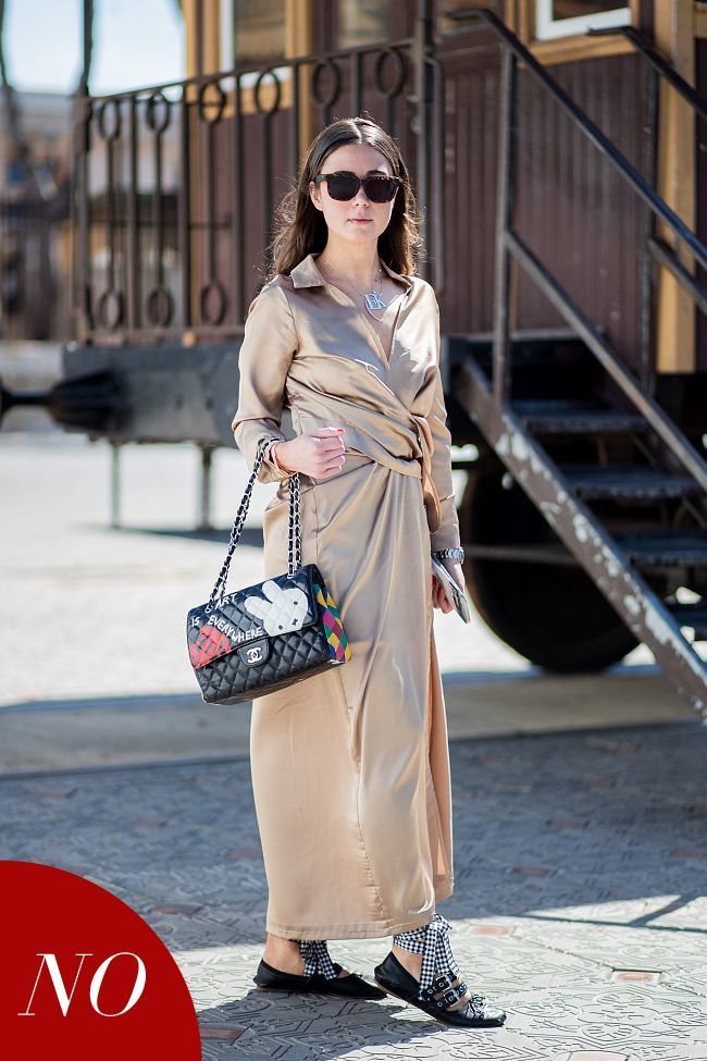 各有各的美 它们的原型都是“芭蕾舞鞋” 1 百穿不腻的经典款 芭蕾鞋的入门可以从经典款开始,圆圆的鞋头,带有简单的蝴蝶结装饰,乖巧百搭,也是市面上最常见的款式。 Karlie Kloss就特别爱芭蕾鞋,这双黑色的已经出现在街拍中不下10次,如果是日常穿着,深色系芭蕾鞋会更显稳重,也更好搭。 但深色也有一个问题是,搭不好会像“上班鞋”。若想尝试更时髦与众不同的,可以选一个能点亮全身的颜色。 2 修饰比例的尖头款 相比圆头的乖巧,尖头的气质要更现代一些,经常看VOGUE推送的你们想必都知道,要论修饰腿型,当属尖头鞋。 尖鞋头的V形线条有拉长小腿的效果,大面积裸露脚背也能让整体比例加分,160cm的姑娘也能看起来更挺拔苗条。 一般的圆头、方头芭蕾鞋多少会在视觉上起到一种截止阻断的作用,对于下装的选择上会有一些限制,而尖头芭蕾鞋基本上不挑。 3 浪漫可爱的绑带款 很多女生都想尝试这种绑带芭蕾鞋,因为它最接近芭蕾演员跳舞时穿着的传统舞鞋,能将身姿衬托得优美迷人。 绑带款主要分为两种,一种是舞鞋式的缎面宽带,还有改良版的细带子。 宽绑带在穿着时,要注意绑带的位置和高度,不要都堆在脚踝处,随性一点,像芭蕾演员那样的交叉系法才会有优雅的感觉;细绑带相对好驾驭,但胖脚的姑娘相对不适合。 4 造型感极强的搭扣款 芭蕾鞋与搭扣的组合多了些造型感,还起到了一定的修饰作用,让脚踝看起来更加纤细。 市面上比较常见的有装饰一条细带的芭蕾鞋,比如Elle Fanning脚上这双,她用来搭配小白裙清新时髦,即便是平底鞋,也不太会有"压低个子”的感觉。 胖脚大可以尝试搭扣芭蕾鞋,它会让脚看起来不那么“肿”,尤其是这种宽搭扣的,不只有“花哨”外形,显瘦效果真的惊艳。 5 显高又舒适的小方跟 平底芭蕾鞋软趴的外形穿不好会有点懒散,加个小方跟就不一样了,体态立马拔高,也很精神,3至5公分的跟高是最舒适好走的,穿一天也不会累。 日常通勤穿条牛仔裤就能出门,而且再也不用担心裤子长短的问题,简简单单就很干练出彩。 不少品牌推出了小方跟芭蕾鞋,多以显眼的漆皮材质为主,编辑建议大家先尝试红色的,显白、舒适和复古都能顾全。 早秋穿芭蕾鞋 这样搭更好看 1 裙长有度 照顾比例又时髦 比较容易出错的是淹没脚踝的裙长,搭配经典款显得有气无力,换双存在感十足的绑带又会觉得繁琐。 所以还是那个道理,为了优雅感搭配中长裙是对的,但脚踝别藏着,尤其是脚腕上有带子或装饰的,要和裙边留出一定距离。 尤其是绑带芭蕾鞋,要把绑带全部露出来才好看。 膝上短裙+芭蕾鞋适合小个子女生,鞋子的轻盈和裙子的俏皮相结合,拉长比例又好看。视频中提到过,芭蕾鞋的老搭档是蓬蓬裙,所以尽量选择裙摆散开的。 2 利落裤装 才能穿得更有型 芭蕾鞋的“轻”可以加分,但有时也会减分,穿搭各种裤装时就需要注意。 没有型的连体裤加上松软材质,整个人都会没精神,也完全展现不出芭蕾鞋的少女气息。 Karlie Kloss的芭蕾鞋+阔腿裤,每个单品拆开都好看,但组合在一起就不协调(全靠美貌和身材撑)。 芭蕾鞋要避免和休闲松垮的裤装一起出现,比较推荐的是黑色小脚裤,每个女生的必备基本款,怎么穿都很难出错。 直筒裤、烟管裤和微喇裤也都合适,这几种裤型的共同点就是有型有款、不软塌散漫。 3 为衣服减“重”才能双倍轻盈 穿芭蕾鞋最大的问题应该就是如何克服轻软、穿出利落气场,这就需要为你的衣服“减重”,这里说的减重是指面料廓形以及颜色方面。 大廓形且有厚度的卫衣或是外套要谨慎穿着。搭配“单薄”的芭蕾鞋,整个人像个“圆规”。 如果还是深色/亮色就更可怕了,芭蕾鞋根本撑不住场面,重心失衡的同时身形也会变胖。 所以避免大且厚的着装,面料也尽量挑选可以为身形减重的材质,一定程度上可以抵消大部分的视觉重量,比如自带轻薄属性的丝滑缎面。 4 秋天穿外套 芭蕾鞋也不违和 芭蕾鞋很轻薄,是不是不能搭配厚重着装了?其实只要保证上下装重量均衡和适当露肤,芭蕾鞋配风衣西装也不违和。 芭蕾鞋搭配大廓形卫衣难度高,但搭配西装+牛仔裤并不难,重点就在于整身搭配是流畅的H型,脚踝的小面积露肤帮你优化比例,同时不破坏秋装的分量感。 如果选择长风衣,记得风衣里面的内搭要层次分明,露在外面的小腿部分也要收紧才行。 如果外套的面料扎实厚重,带跟的芭蕾鞋存在感更强,要比平底款更适合。 又仙又美的芭蕾鞋 就从这几个牌子挑 1 Miu Miu 平面摄影:沈继刚 模特:杨思瑜(东方宾利) 造型:Foco Chen 妆发:方园 要说最受时尚圈欢迎的芭蕾鞋,非Miu Miu莫属。融合了甜美、浪漫复古和一点摇滚风的Miu Miu芭蕾鞋,直至今日还霸占在无数个女孩的愿望清单中。 今年Miu Miu芭蕾鞋比以往更耀眼,面料上仍有新的尝试,2018秋冬系列就是满满的梦幻风格,闪钻和亮片都十足少女。 除了大家都熟知的绑带芭蕾鞋,尖头款也非常受欢迎,剔透的珍珠作为点缀,百搭又不乏亮点。 2 Salvatore Ferragamo 同样标志性的还有Ferragamo的Vara,这双蝴蝶结芭蕾鞋是品牌的经典之作,今年秋冬又运用了华丽的天鹅绒材质。 天鹅绒质感华丽,很适合秋冬,颜色百变,每一款色调都调配得恰到好处,而且这款鞋子不挑脚型,大部分姑娘都能驾驭。 以及斑斓的彩虹水晶款,鞋面布满了闪亮的水晶装饰,灵感源自品牌1938年设计的彩虹楔形鞋。 3 