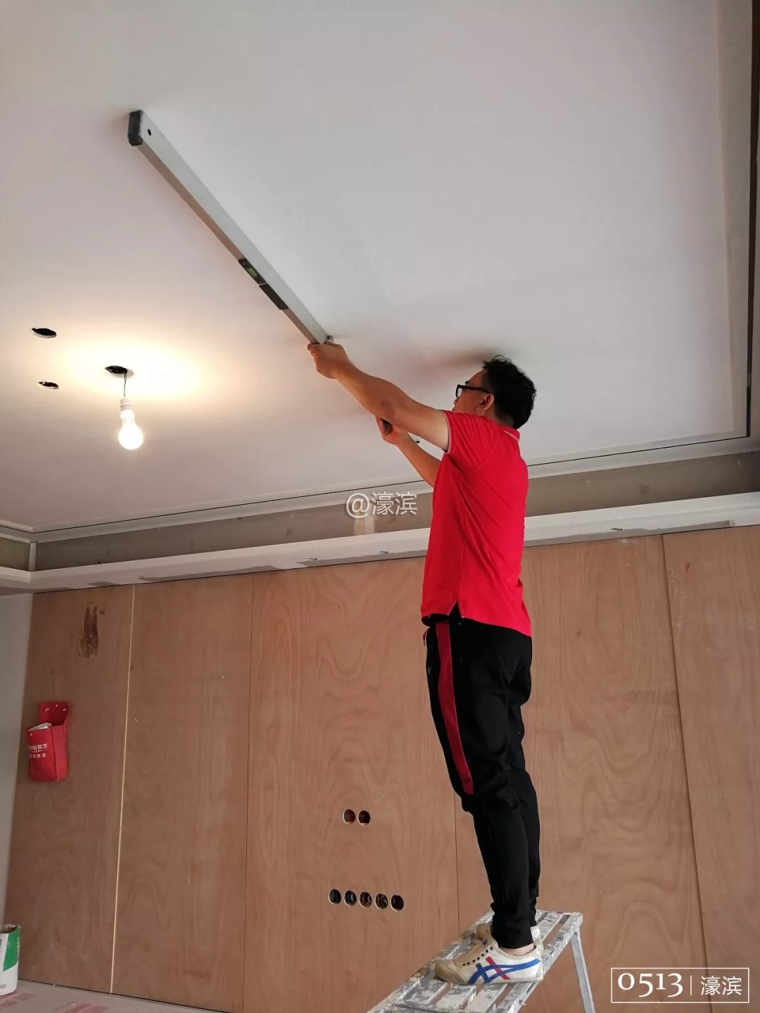 他屈膝于地,验收着每一条缝边;他平身抚触,感受着每一块墙面带来的平滑度;他站高抬臂,测量着墙面平整的精准度。绝不放过任何一个细节,绝不假公济私,才能让客户知道,他们的厚望与寄托是有所值得的。