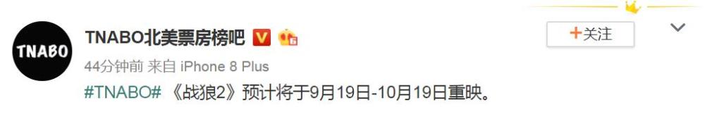 《战狼2》国庆节期间将重新上映一个月,60亿票房有希望了 |