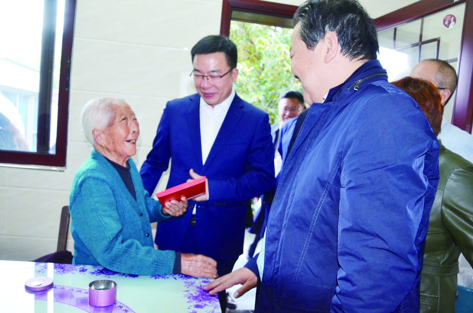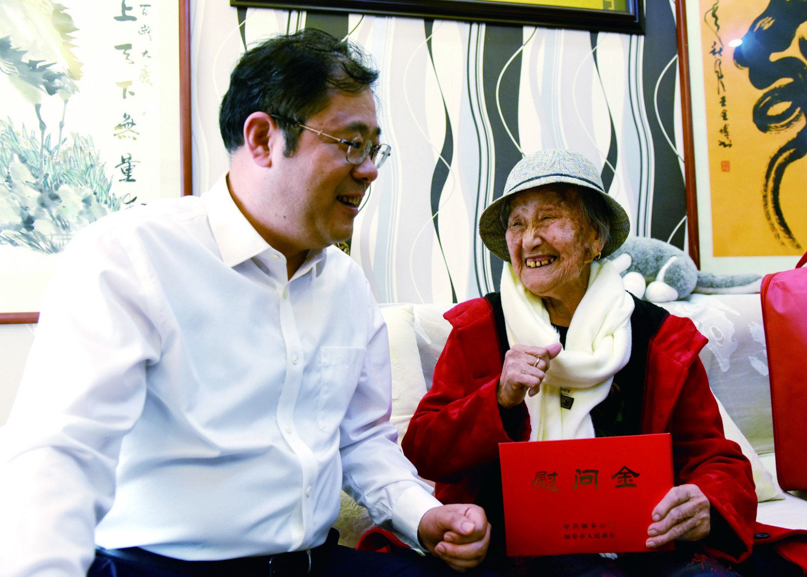图为市领导慰问百岁老人现场。□融媒体记者包国平 黄友谊摄 浓浓敬老心,传递重阳情。16日至17日,市委书记陈晓东,市委副书记、市长何益军分别带队走访慰问了部分百岁老人,捎去市委、市政府对老人的关怀。市委常委、如皋工业园区党工委书记、如皋市长寿旅游度假区党工委书记刘向阳参加活动。 家住龙游御境的谷宾今年101岁,身体状况良好。陈晓东为老人送上慰问金,并祝老人健康长寿。接过慰问金,谷宾高兴得合不拢嘴,连说:“谢谢党和政府对我这么好。”谷宾向陈晓东展示了自己的书法作品,大气磅礴的笔法引得大家纷纷称赞。去年,谷宾参加了在我市举办的第20届亚洲老将田径锦标赛。陈晓东称赞老人在洲际大赛上展示了长寿之乡如皋老年人的风范,为家乡争得了荣誉。家住紫竹园的许秀珍老人今年101岁。在家人的悉心照料下,精神矍铄、面色红润。陈晓东与她亲切交谈,夸赞她:“好身体,好福气”。老人还跟陈晓东分享了她的长寿秘诀:心态平和、儿女孝顺,营养均衡。前不久,老人还拍了一组写真照,经过媒体转发,老人如今也成了如皋的“网红”。陈晓东表示,老年人是如皋的宝贵财富,要大力弘扬尊老敬老爱老的传统美德,创造更优环境,营造更浓氛围,关心关爱老年人,不断提高老年人的生活质量,让他们拥有更多的获得感和幸福感。 在家住经济技术开发区东风3组的百岁老人秦德美家中,何益军仔细询问老人的身体状况和饮食起居情况,并送上慰问金和慰问品。秦德美老人身体硬朗,精神状态很好。其家人告诉何益军,老人睡眠好、胃口好,平时喜欢吃肉、喝黄酒,还爱好打长牌。何益军说,长寿老人是家庭的财富,更是如皋的长寿品牌,他叮嘱其家人一定要关心好、照顾好老人。在经济技术开发区阚庄村,何益军走进百岁老人纪显英的家,询问老人的生活情况和健康状况,并与老人及其家属拉起家常。“谢谢市长来看我,我高兴。”老人拉住何益军的手说道。纪显英老人现年100岁,身体健康,乐观开朗。何益军说:“老人是家庭的财富,如皋长寿老人之所以多,最重要的原因就是家庭和谐,子女孝顺。”他为老人送上了慰问金和慰问品,并祝她健康长寿、节日快乐,同时鼓励其子女要继续用心陪伴老人、更加细心地爱护老人。(原标题:市领导开展重阳节走访慰问)