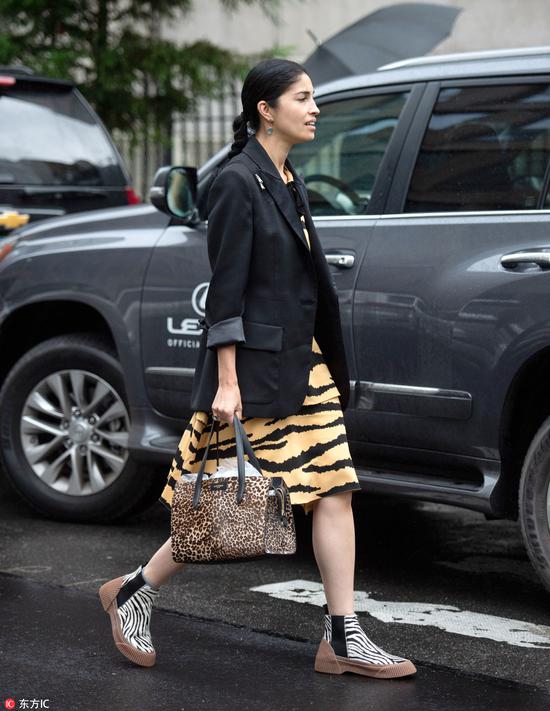 一条豹纹短裙,一双斑马纹切尔西短靴,一个豹纹手提包,一件廓形西装,这样的动物花纹大集合的混搭,走在街上谁会不看你呢?