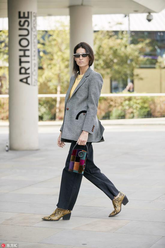 1。短靴+裤装——可塞可放,气场全开 繁复的动物皮纹短靴,绝对是潮人们点亮基础单品的利器。再寡淡的裤装配色,再基础的裤装款式,搭配蛇皮纹短靴,就可以让整体造型,散发出野性的魅力。