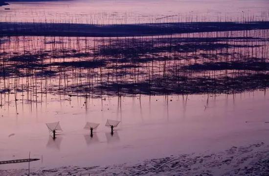滩涂中的海带和紫菜田、成片的竹竿和渔网、星星点点的海岛和渔船、面朝大海立在悬崖上的小村庄,都能成为摄影师镜头对准的目标。  Photo by Tommy Lai via Flickr