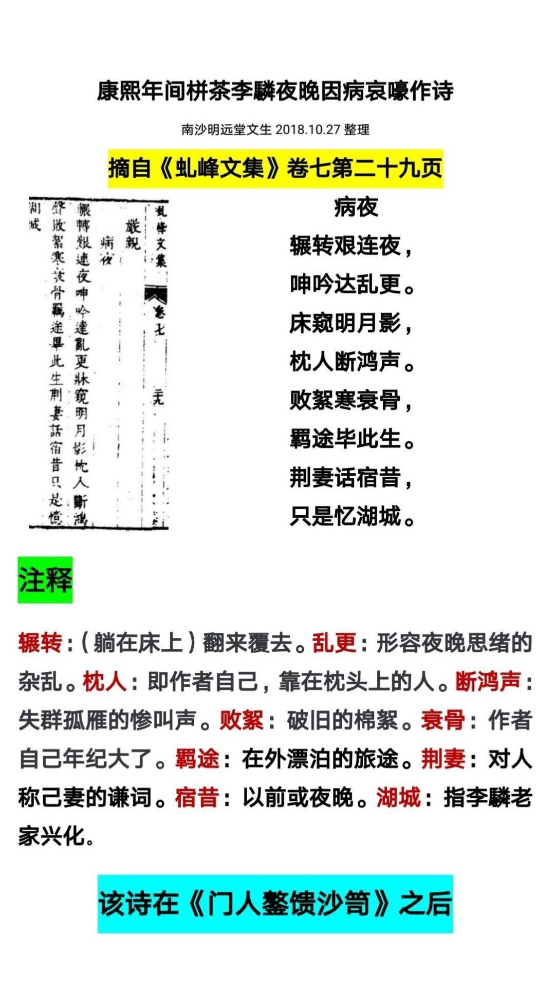 康熙年间栟茶李驎夜晚因病哀嚎作诗 |