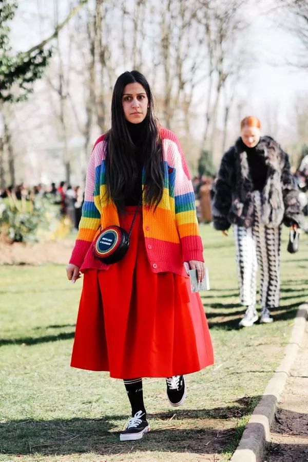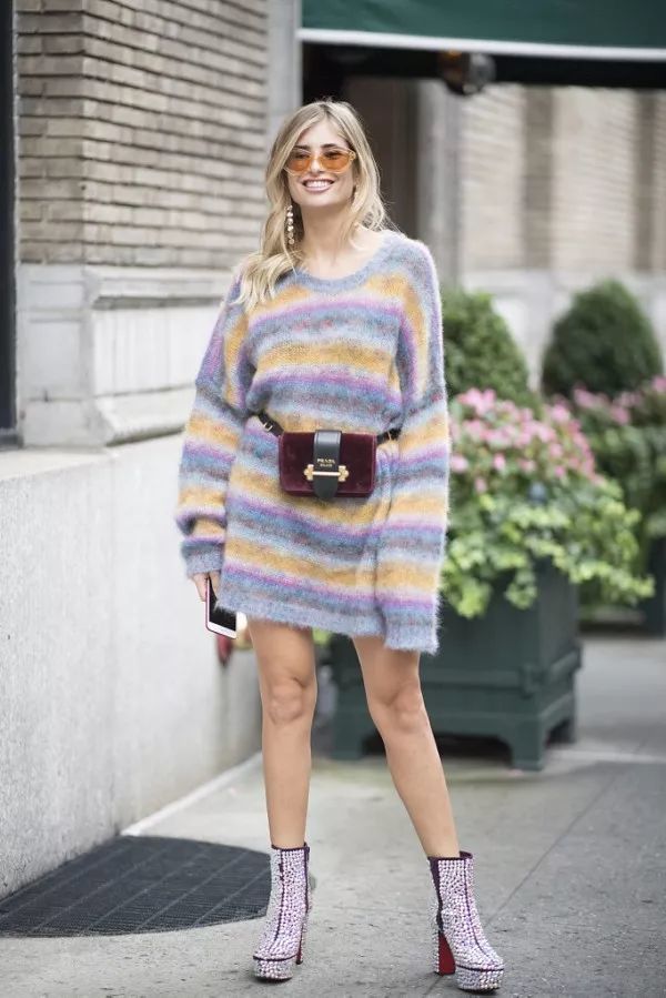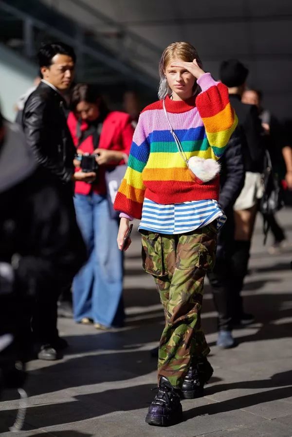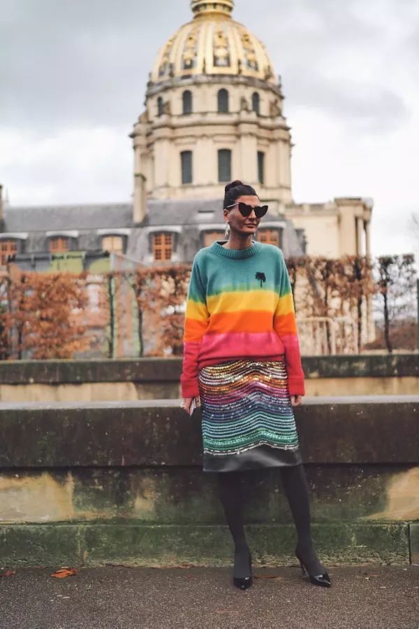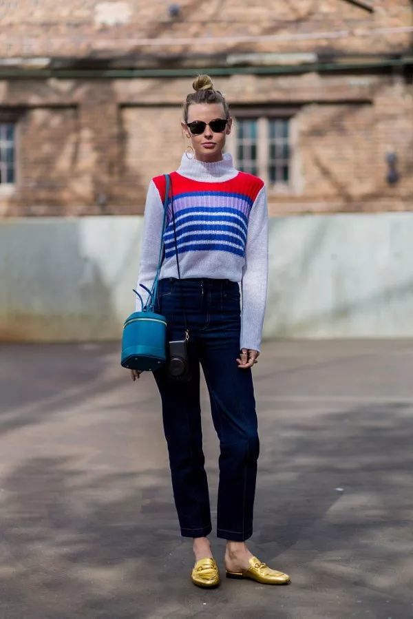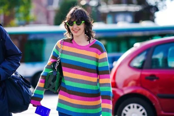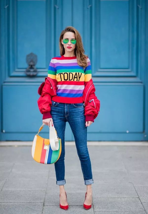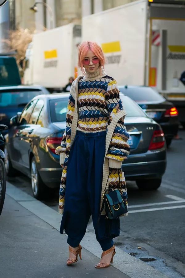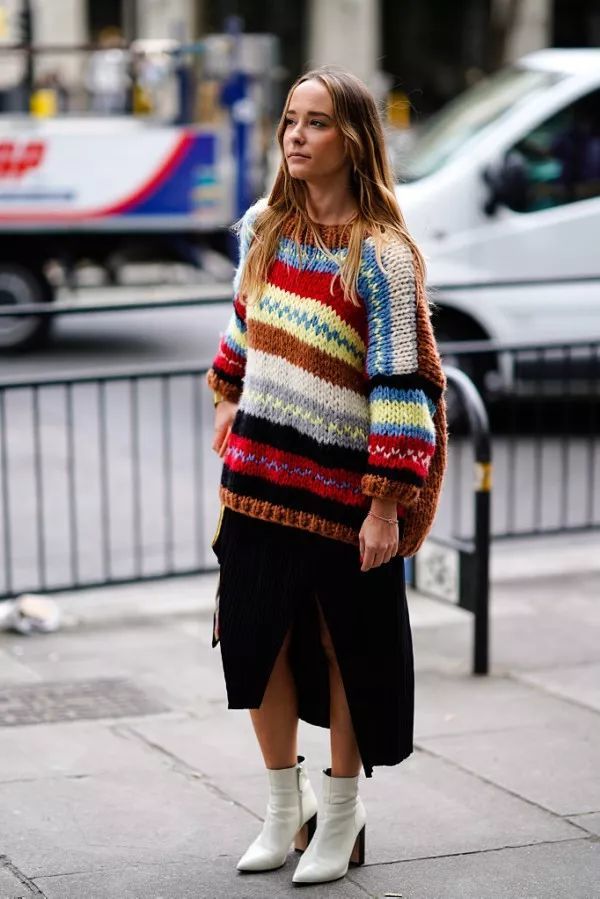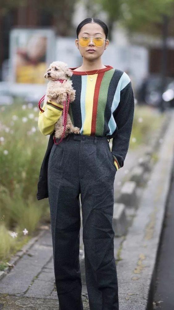 冬天通常走在大街上就一种感觉,满大街的黑白灰,或者都是大地色系,今天YOKA小姐姐就想然你彻底打破冬天的沉闷!穿点色彩亮丽的毛衣也确实不错哦!保暖还好看~ 大表姐这身粉色毛衣,配上休闲的牛仔裤+球鞋,还有那抹红唇非常画龙点睛。随性好看,这就是刘雯的穿衣经! 乔欣也采用了同样的搭配方法,不过配合乔欣的Style,也确实有一种邻家女孩的甜美感。 这些彩色条纹毛衣穿在身上 打破沉闷还保暖 最近这种彩条毛衣十分火!就在不久前的秋天,很多爱时髦的女孩还把这种彩条大毛衣当裙子穿。 素色的彩条毛衣很适合上班族,搭配上一条牛仔裤和短踝靴就可以完美出街了! 竖条纹的彩色毛衣也经常出现在时装周的街拍潮人身上,他们带上大墨镜,穿上黑色直筒裤就做最时髦的女孩。 有时候彩色条纹毛衣,搭配同色系的彩色条纹大围巾,也是有非同凡响的效果哦! 彩色条纹毛衣也可以很可爱,偏细条纹的彩色毛衣,下面搭配上运动裤非常休闲好看。 另外在包包的选择上,也可以参考一下自己穿的彩色毛衣,挑一款颜色相近的。 即使是这些Oversize的大毛衣,大大的水袖也是你步步生风的时髦准则! 粗针织的毛衣可能会有点漏风,别忘了穿一下打底。里面套上长裙子,背上你的通勤包,也是可以去上班的。 或者就是那种比较紧身的条纹Top,下面配上阔腿裤,这样还可以拉长你的腿长。 彩色毛衣里面还可以搭配条纹衬衫,混搭的效果是相当不错的! 条纹毛衣搭配条纹裙,做到整体和谐统一,同样要搭配一双颜色相近的牛津鞋或者短靴哦! 彩色条纹毛衣,上面加上一点卡通图案也是这几年一直非常流行的款式,不妨去尝试一下这种“减龄”毛衣吧! 彩色色块毛衣 同样是你在冬天不可多得的时髦伙伴 如果不是很喜欢彩色条纹,彩色色块毛衣也是可以选择的,这种菱格纹式的彩色毛衣,搭配上阔腿裤和毛拖鞋,想不时髦都不行~ 彩色色块的渐变色毛衣,你也可以考虑入手一件,当你其他的单品都是黑白灰的时候,这种渐变色块的毛衣将会非常的百搭! 像Versace这件彩色色块毛衣,非常的朋克,即使是一身都穿得色彩斑斓也没有关系! 彩色色块毛衣上面加一些植物剪影的图案,是Saint Laurent的拿手绝活,椰子树彩色毛衣可以瞬间将你变的很酷! 大色块的大毛衣,尤其是开衫也可以当做你冬天的大外套,如果你想穿连衣裙,外面套上这种大针织外套也会很不错!