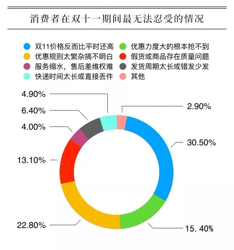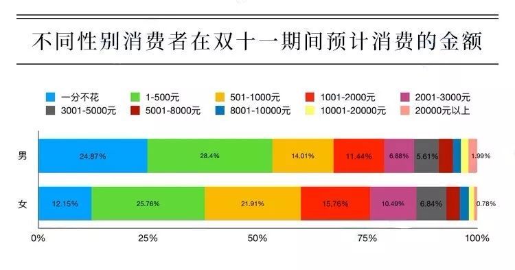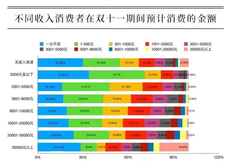 一年一度的双十一就要来了。又到了这个剁手的节日,今年的你,有何打算?近日,《维度》联合腾讯理财发布了一份关于双十一消费情况的调查,显示高达18.8%的消费者已打定主意不花一分钱,而按性别来看,女性中有12.15%声称“绝不剁手”。 服装鞋帽选购比例最高 年纪越小穿衣打扮花钱越多 绝大多数人会提前计划双十一购物的相关适宜,调查显示,在人们的预算清单中,服装鞋帽占比最高,达到51.3%。其次是数码家电,占比超过两成。当问及哪一品类将花费最多时,30.9%的消费者选择了服装鞋帽,数码家电则紧随其后,占比14.4%。 若以性别区分,将最多钱花在服装鞋帽的,男女比例不相上下,但20.19%的男性在数码家电中花费最多,这一数据是女性的2倍还多;19.8%的女性在美妆护肤一类中花费最多,甚至是男性同比数据的10倍。 不过,在服装鞋帽和美妆护肤这两大品类上,年龄越小的人群对穿衣打扮的需求越大。数据显示,19.4%的95后在美妆护肤品类中花钱最多,几乎是60后的4倍。同时,95后也是所有年龄段中在买衣服方面花钱最多的群体,占比36.32%,比60后足足高出一成多。 数据显示,男性和女性对于服饰的需求愈发趋同,年轻一代对服饰的投入越来越大;调查也发现,越来越多的年轻人愿意花大价钱买衣服,愿意为品牌附加价值买单。 近两成消费者表示今年不花钱 高消费群体中男性是大头 调查显示,18.8%的消费者表示今年双十一坚决不花一分钱。按照性别来看,女性中有12.15%声称“绝不剁手”,男性几乎是其两倍,占比24.87%。不过,在高消费领域里,男性并没有显得比女性理智多少,双十一预计消费超出一万元的,男女比例相差无几,而单独计算超过两万元的,女性还不到男性的一半。 这也佐证了前文的数据,在家庭消费中,男性更多承担选购大件的责任,数码家电这类产品件数不多,但单价够高。 更值得注意的是,在双十一期间不花钱的人群中,每月到手收入低于两千元的人群占比均超过三成。其次则是到手收入在3万元以上的人群,占比28.41%,但他们同时也是双十一预计消费超过2万元的主力消费人群,占比19.32%。 《维度》栏目向中国财富网分析认为,低收入人群在双十一期间拒绝消费,自然是源于资金不足的压力。而高收入人群的两极分化,或许是因为,一方面,他们有进行大额消费的资金实力,另一方面,他们可能并不需要理会这种主打商品优惠的购物狂欢。 价格高、规则复杂令人无法忍受 实际上,双十一优惠规则过于冗杂,早已成为了众矢之的。在《维度》联合腾讯理财的调查中,当问及双十一期间发生什么事最令你无法忍受时,22.8%的消费者选择了“优惠规则太繁杂根本搞不明白”,比例仅次于选择“双十一价格反而比平时还高”。此外,优惠力度大的根本抢不到,以及假货或商品存在质量问题这两种情况也饱受诟病,占比均超过一成。 颇为有意思的是,若按照年龄进行对比会发现,越是年轻的消费者越看重服务和体验。其中,对服务缩水、售后差维权难以及发货周期太长或错发少发的状况,最不能忍受的是95后的消费者,这两项加起来达到16.91%,几乎是60后消费者同比数据的两倍。 另外,调查显示,在双十一当夜,超过五成的消费者都不会为了抢拍商品而守候至零时,还有34.1%的人表示视情况而定,如果有特别想要的商品才会专门守候。不过,这个情况显然是因为双十一自去年起开通了商品预售。今年10月20日,双十一预售商品也开放了预订,在一定程度上避免了优惠商品抢不到的难题,也疏解了0点抢付高峰的网络拥堵问题。 近半消费者认为双十一已变味 这几年,活动发起方为了双十一购物节向好发展,想了很多的方法,也增加了很多改进措施,但消费者很大程度上并不买账。在调查中,46.1%的消费者认为如今的双十一已经变味,“以前是真的有优惠,现在是噱头大于实际。”还有6.7%的人群对双十一表现出强烈抵制的态度,另有16.1%的人坦言,参加双十一本意是想省钱,但现在反而因为囤货造成了浪费。 作为双十一购物节的重头戏,商品的优惠力度是否足够有吸引力,是最受关注的焦点,但在本次调查中,仅有8%的消费者认为双十一的优惠力度够大,购物非常划算省钱,绝大多数人则表达了失望和不满的情绪。 不过,对于那些仍然选择在双十一大肆购物狂欢的人而言,比起切实能享有的优惠,超过一半的人(51.7%)表示:“双十一已经成为一个节日了,就像中秋节要吃月饼,购物节就一定要买东西!”。 诚然,按照以往的数据统计,自双十一作为购物狂欢节诞生以来,每年的销售数据都被屡屡刷新,今年能否再创新高,不如拭目以待。