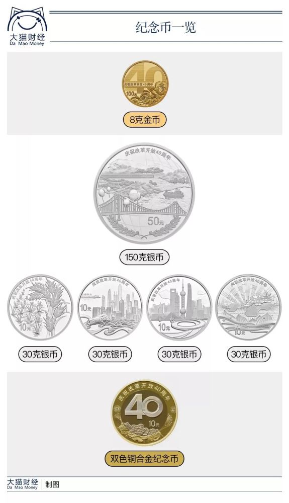 纪念币普通人了解得不多,但是对于热衷于收藏的人来说,这可是一个很大的品种。 比如猫姐一个朋友,她非常关注纪念币,每次央行有纪念币发行,她都会好好研究一番。 一些纪念币很有收藏价值,升值幅度也大。猫姐记得几年前爆出一条新闻,某贪官被查,查出来赃物里有很多龙钞。这些龙钞当初发行价一张300元左右,多年过去了,那类价格竟然飙升到近2万一张,升值幅度可以说是非常惊人了。 现在市场上纪念币很多,比如,每年都会发行十二生肖纪念币、一年一套的熊猫币、逢各种重大节日也会发行纪念币等。怎么去选择升值可能高的纪念币呢? 01 如何选择纪念币?有几大规律 ▌首要的,发行量少则价高。收藏品历来物以稀为贵,纪念币发行量多少,是决定其投资价值和升值潜力的首要因素。纪念币的发行量与市场价格呈反比关系,量少价高,量多价低。 ▌其次,品相很重要。收藏纪念币如同收藏邮票,也要注意品相,即外观质量。品相好的纪念币与品相差的纪念币,市场价格相差很大。 ▌还要注意选择独特题材。从某个角度看,买纪念币就是买题材,有题材就有炒作的概念,而不具有独特题材的纪念币,是很难激起市场的投资热情的。 02 这套纪念币长啥样? 最近有一类纪念币,猫姐就觉得不错,发行量少、品相好,题材也重大。 这就是央行发行的庆祝改革开放40周年纪念币。这套纪念币长什么样呢? 先给大家看一下。 ▌这套纪念币共7枚,其中金质纪念币1枚,银质纪念币5枚,双色铜合金纪念币1枚,均为中华人民共和国法定货币。面额分别为100元、50元、10元。 这7枚纪念币(金、银、铜合金),其实属于两种类别,即贵金属纪念币(金、银)币和铜合金纪念币。 贵金属纪念币主要用于收藏。比如这个金质纪念币,面额100元。但你100元肯定是买不走的,因为它的材质是纯金。目前国内实物金价1克起码得要275元以上。果然,在官方公开的“初始发售价”中,金币的起售价就是3560元。 其它5枚银币,150克圆形银质纪念币为精制币,含纯银150克,面额50元。4枚30克圆形银质纪念币也为精制币,含纯银30克,面额10元。 六枚金银币的图案主要表现三个内容,一是表现欢庆的场景,二是表现“一带一路”建设成果,三是表现改革开放的典型地区。 ▌在规格和发行量方面,相比那些动辄发行过亿的纪念币,改革开放40周年纪念币的数量堪称稀有。大家看一下各纪念币的发行量: 金、银纪念币最大发行量总共就18.4万枚:8克圆形金质纪念币最大发行量20000枚;30克圆形银质纪念币最大发行量4×40000枚。 150克圆形银质纪念币发行量最少,仅4000枚。 量少就价高。中国金币网信息显示,150克圆形银质纪念币售价竟然高达2620元/枚,比另外4种银质纪念币贵多了。 ▌就题材来说,庆祝改革开放40周年的纪念币,题材特殊,有重大历史意义。目前市场上央行发行的关于改革开放周年题材的纪念币仅有30周年和40周年这两套,发行数量也比较有限。 发行量少,题材也重大。猫姐觉得,如果收藏的话,确实还是可以的。 ▌纪念币在哪里买?这些纪念币都由中国金币总公司经销。销售渠道主要分为四类:官方渠道、银行渠道、中国长城硬币投资有限公司和98家特许零售商。 03 抢不到金银纪念币,还有机会 金银币数量少,如果抢不到金银纪念币,也不用沮丧,还有一种双色铜合金的面额为10元的纪念币。 双色铜合金纪念币发行数量太大了,1.8亿枚, 要升值估计没有那么容易。想换的话,就图个新鲜吧! 这类纪念币也有好处,可以收藏,还可以上市流通。在发行方式上,双色铜合金纪念币采取预约方式分两批次发行。 ▌什么时候发? 第一批次于2018年12月28日起发行。 第二批次具体发行日期及工作安排将另行公告。 工农中建四大行的各地分行将于2018年12月5日至12月8日办理改革开放币第一批次的预约业务。 感兴趣的可通过上述四家银行的官方网站或营业网点进行预约登记。如果是去网点的话,记得带上身份证,免得白跑一趟。 铜合金纪念币每人预约、兑换限额为20枚。2018年12月28日至2019年1月4日你就可以去银行兑换了。