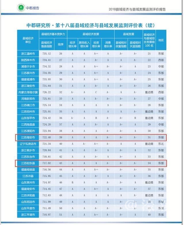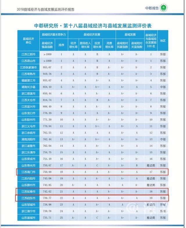 2018全国县域经济百强排名发布 南通三县级市跻身前二十 |