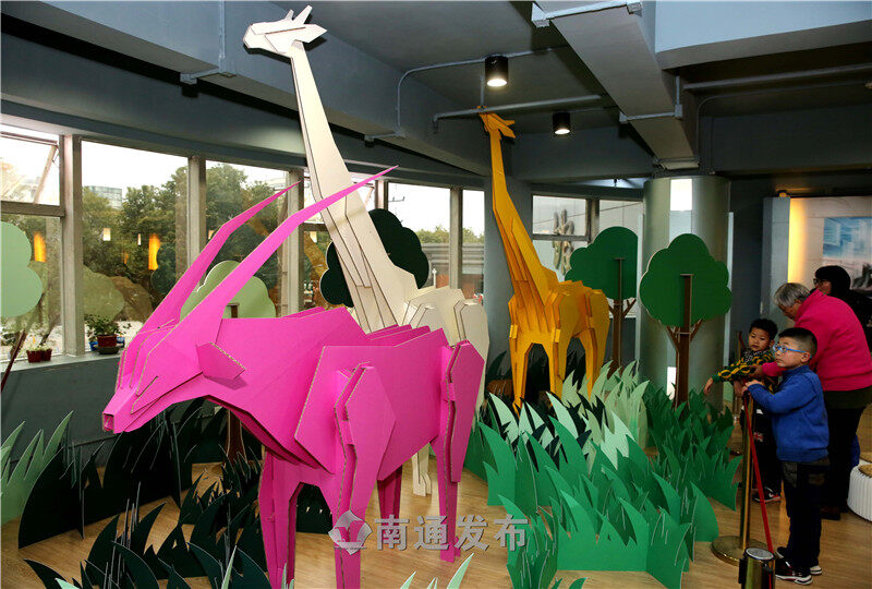 此次公益展览以“只有你想不到,没有我做不到”为主题,分为近在纸尺、迷宫城堡、神奇动物园、欢乐世界等四大主题展区。穿梭其间,不仅有长颈鹿、瞪羚等小动物,还有近千片纸板拼接而成的2米高的变形金刚,以及突破传统时尚元素的各类晚礼服等新奇特纸质物品,市民不但能了解纸相关的文化与发展,还可以参与动手实践古法造纸、纸相关实验及纸艺作品制作等,体验动手动脑的快乐。展览期间,南通科技馆还精心策划了“拔纸神功”等精彩科普实验秀,带公众深度体验纸的奥秘,探究纸的极限。