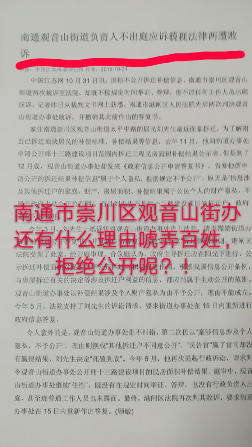 [百姓民声] 请问中共南通市崇川区人民政府:观音山街办对我的信访答复算是负责任的吗? |