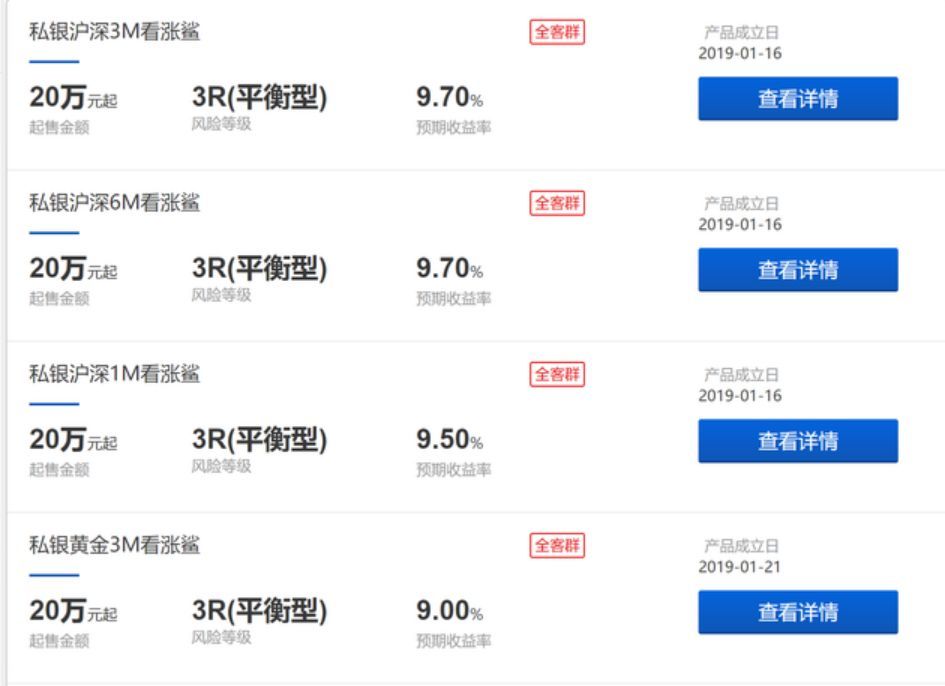 猪年新春佳节脚步临近,也意味着很多人的口袋里将多出一笔压岁钱或是年终奖。如何给这些钱找到合适的增值机会,还需要人多费心思。 总体来看,整个2018年,市面上的理财产品收益率表现都较为一般。融360大数据研究院数据监测显示,2018年12月份,银行理财产品平均预期收益率为4.40%,与11月持平。 但就在这样平淡的市场环境下,节前市场上却突然出现了一批高收益率产品:每日经济新闻(微信号:nbdnews)记者注意到,近日多家银行推出了动辄8%、9%最高年化收益率的理财产品,最高的一款收益率甚至可达9.7%。 不过先别高兴的太早。这些最近流行的结构性理财产品,“学名”叫做非保本浮动收益型理财产品,与很多人传统观念里保本稳健的理财产品并非一回事。而要赚取高收益,还得取决于你是否赌对了A股、黄金、原油等价格走势。 预期收益率最高可达9.7% 近期交通银行发布了一款理财产品,预期收益率最高可以达到9.7%。这款产品正是“得利宝·私银慧享”3个月结构性人民币理财产品(沪深300挂钩看涨鲨鱼鳍)。 图片来源:摄图网 根据产品说明书,该产品是指由交通银行发行的以90天为单期产品投资期限的理财产品,单期产品规模上限为0.5亿元。如单期募集规模低于100万元,银行有权宣布当期产品不成立。同时,该产品类型为非保本浮动收益型,产品风险评级为较低风险产品(3R)。 该产品挂钩标的为沪深300指数,上海证券交易所网页会公布沪深300指数收盘价(15:00价格)。 不过,这一款产品投资起点也比一般的理财产品高很多。若是交通银行私人银行客户,投资起点为20万元,而非私人银行客户投资起点为600万元,以1万元为单位递增。而本期该产品募集期为2019年1月9日至2019年1月15日19:00。 据介绍,此款理财产品的挂钩标的为沪深300指数。产品投资起始日为2019年1月16日,到期日为2019年4月16日,观察日为2019年4月11日。 “得利宝·私银慧享”理财说明书截图 若观察期内(1月16日-4月11日,下同),挂钩标的(沪深300指数,下同)收盘价与当期产品投资起始日(1月16日,下同)挂钩标的收盘价的比值曾大于障碍价(106%,下同),则单期产品预期年化收益率等于预期敲出收益率(5%); 若单期产品观察期内,挂钩标的收盘价与当期产品投资起始日挂钩标的收盘价的比值从未大于障碍价,则氮气产品预期年化收益率计算规则如下: 若单期产品观察日挂钩标的收盘价与当期产品投资起始日挂钩标的收盘价的比值小于行权价(99%,下同),单期产品预期年化收益率等于预期最低收益率(2%,下同)。 若单期产品观察日挂钩标的收盘价与当期产品投资起始日挂钩标的收盘价的比值大于或等于行权价,单期产品预期年化收益率等于预期最低收益率+参与率(110%)*(当期产品观察日挂钩标的收盘价/当期产品投资起始日挂钩标的收盘价-行权价)。 多款理财产品预期收益率高达9% 另外,还有几款产品预期收益率虽不及9%,但是也高达7%~8%。而这些产品挂钩标的包括中证500指数、上海期货交易所交易的原油1903合约等。 除交通银行以外,工商银行也推出了最高预期年化收益率高达9%的理财产品。 记者注意到,这些动辄最高预期年化收益率就达8%、9%的理财产品均为非保本浮动收益型理财产品。 净值型产品就没有预期收益率,而是在产品到期后,根据产品实际市场投资报价来计算客户收益。 据融360大数据研究院不完全统计,2018年12月,净值型理财产品发行量508只,环比增加34.04%。可以看出,近几个月净值型理财产品发行量增速飞快,银行理财转型加速。据公开数据显示,一些大行的净值型理财产品规模占全部理财规模的10%以上。 “不保本是个必然的趋势,因为政策已经下来了。”一位国有大行理财经理告诉记者, “银保监会已经发文了,说要在2020年的年底不再有保本保息。同时,银行如果有加快步伐,做一个整体的整改,比如保本不再有了,银行会收到奖励。所以不是要等到2020年底,银行可能2020年初,或者2019年底就可能会完成整改。” 黑龙江省农村信用社联合社资金运营中心主任张铭富告诉记者,早转型可以早增加投资者黏性,大行在资产管理和销售渠道等方面都比中小银行有竞争优势,但中小银行也可以根据投资者偏好深耕有特色的理财产品细分市场。