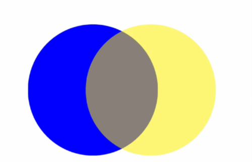 在理解了上述道理后,蓝色的天空为什么显得灰蒙蒙、不通透,就引刃而解了。如图所示,根据原色互补原理,当黄色与蓝色这两种互补色叠加时,画面会出现脏脏的灰色。