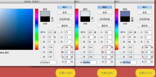 第一组的三张照片是不通透的照片。用PS拾色器吸管吸取图中标示的天空测试点,对其CMYK值进行分析比较。