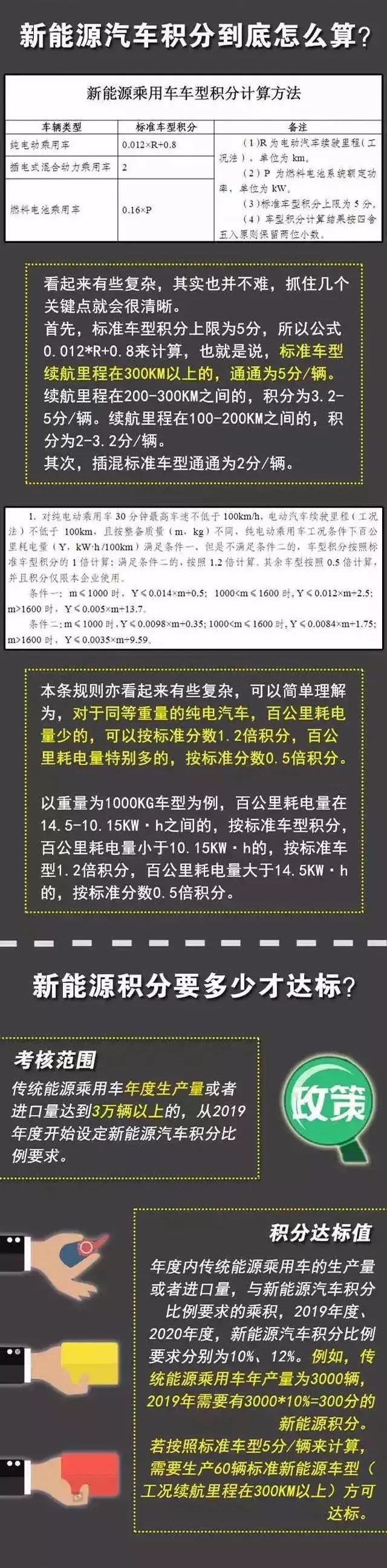 依照双积分管理办法,国家对2018年的新能源积分不做考核,对2019年度、2020年度,其新能源汽车积分比例要求分别为10%、12%。同时,2019年的新能源汽车正积分可以等额结转一年。同时,2019年度产生的新能源汽车负积分,可以使用2020年度产生的新能源汽车正积分进行抵偿。