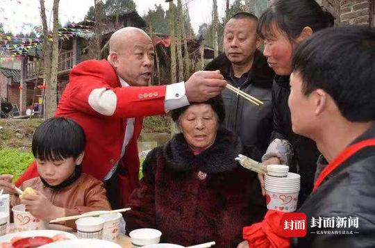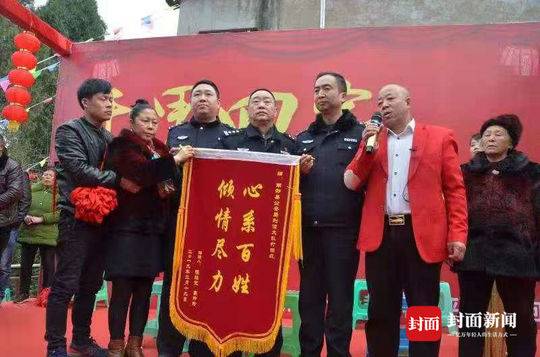 送上精心准备的锦旗,和警方、志愿者、家人、乡邻集体合影,为了庆祝游子归来,亲人团聚,家里早已准备好了团圆饭,互相争着为对方夹菜,虽眼含热泪,但此时的笑容却是那么甜。