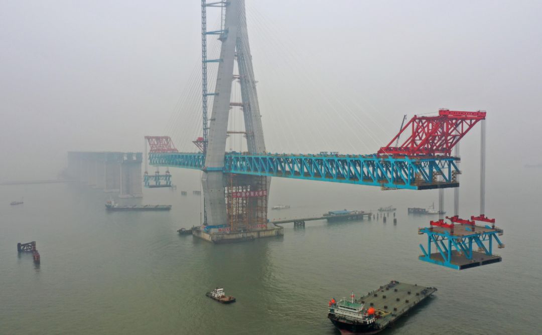 相关新闻 开工建设5周年 沪通长江大桥钢梁架设完成总量40% 2019年3月1日,正值沪通长江大桥开工建设5周年之际,由中铁大桥局承建的主航道桥,完成了28号墩第9轮大节段钢梁双悬臂吊装作业,北主塔的钢梁长度达到602米。至此,主航道桥钢梁架设总长度已达828米,接近架梁总量的40%。 架梁是跨江大桥施工的关键阶段。大节段吊装主桥钢梁则是沪通长江大桥施工的一个创举。伴随着施工装备的日新月异,我国长江大桥架梁施工经历了杆件、桁片 、节段三个阶段,如今进入了大节段吊装的新阶段,大节段吊装可以大幅度减少架梁施工对长江”黄金水道“通航的影响。