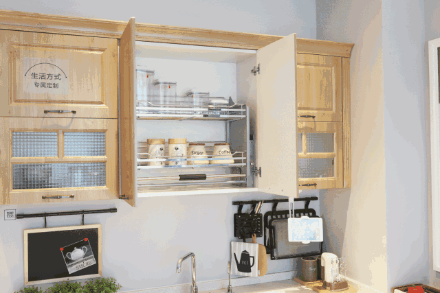 ' @" I6 w x! Z4 N对于身高不是太高的人来说,要拿吊柜里面物品的时候简直可以用“艰难”来形容。其实啊,设计一个吊柜拉篮就可以轻松解决这个问题~
