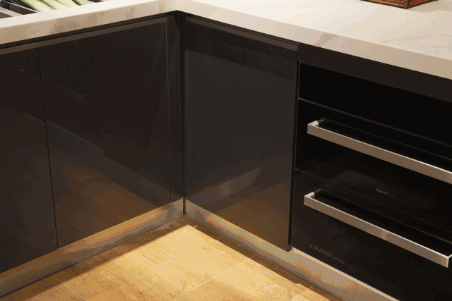 : m, q; Z. A# ^$ ]$ e* uL型橱柜,可以利用转角位的空间,装一个转角拉篮。
